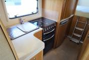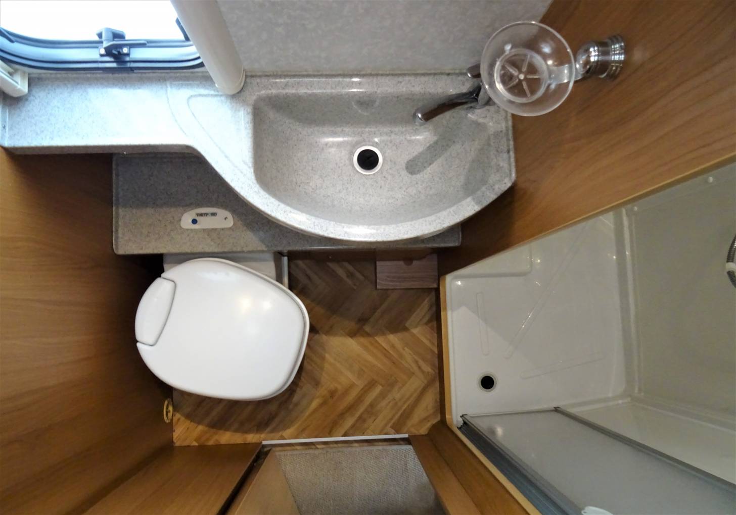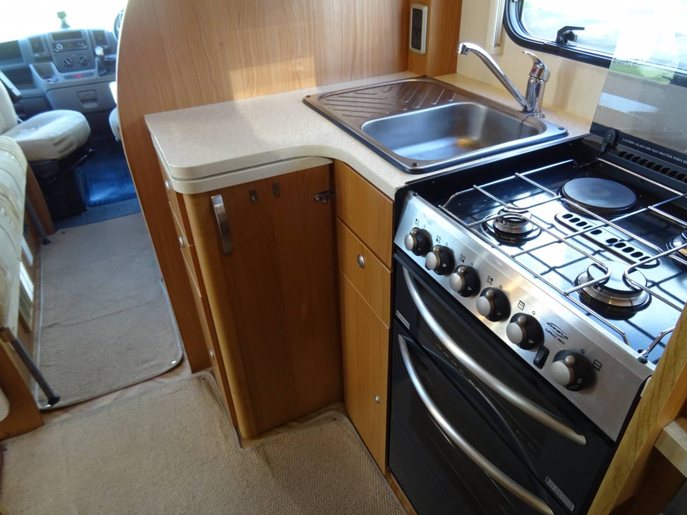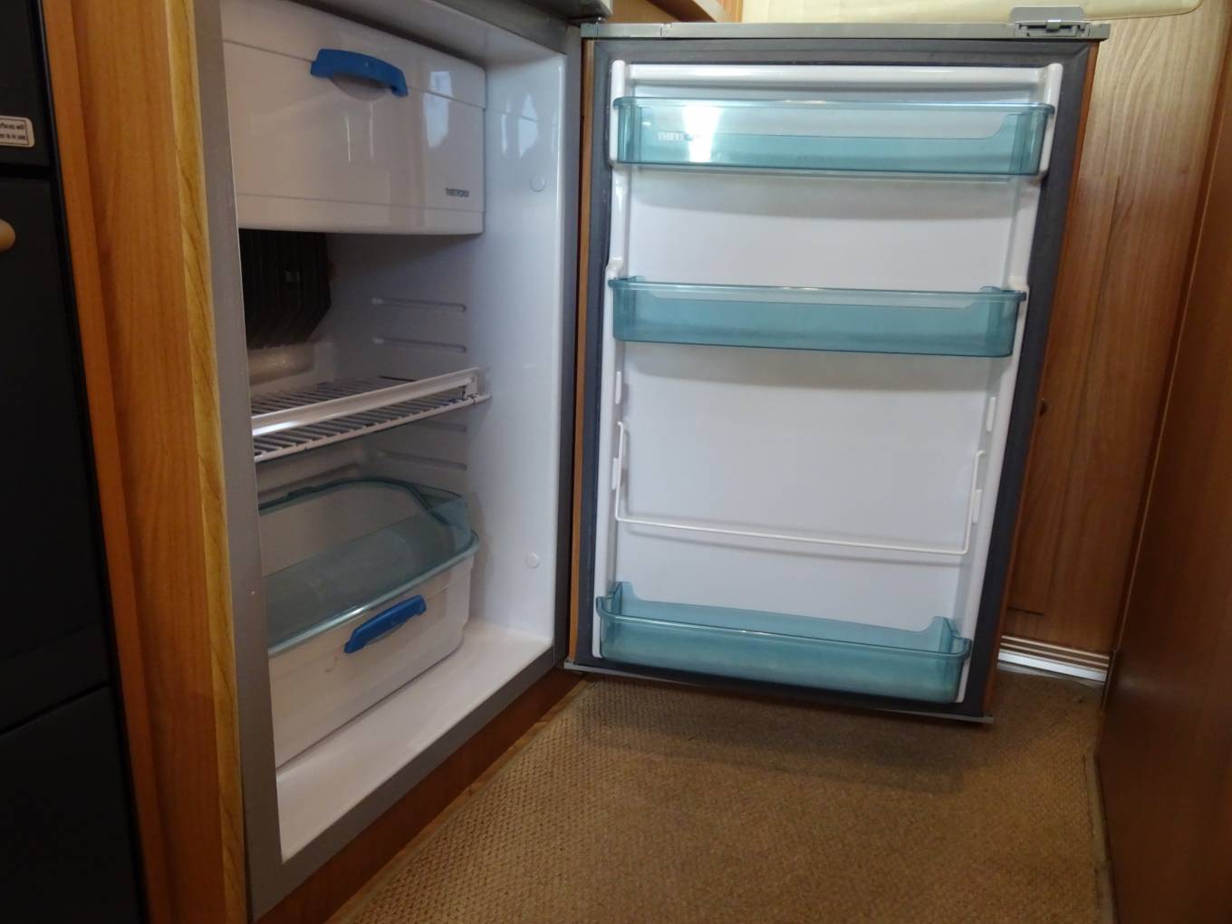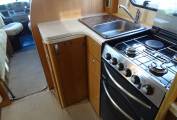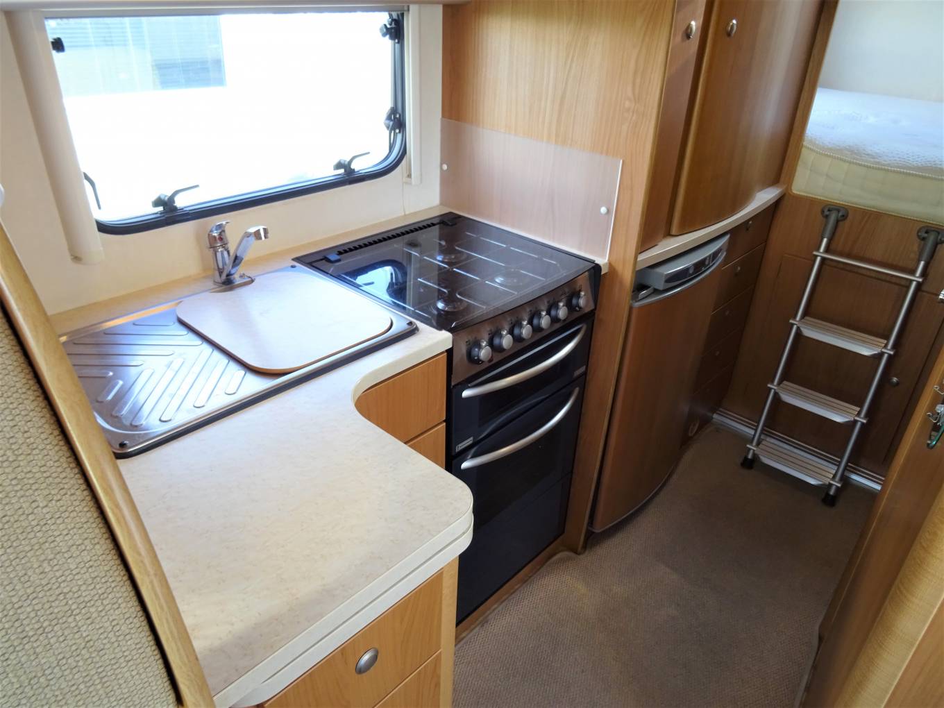 Mid ship you will find the well equipped kitchen with a cooker with oven, grill, 3 gas burners, electric hot plate, a sink with mixer tap and drainer, Also mid ship the immaculate washroom features a separate shower with screen, a cassette toilet, a wash basin with mixer tap, a mirror and some storage space for your bathroom essentials.