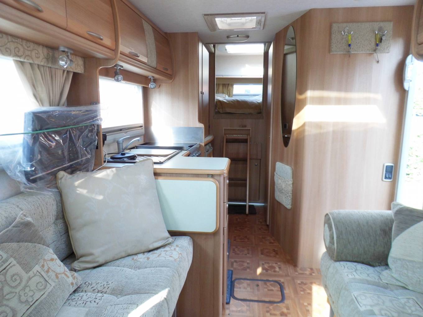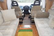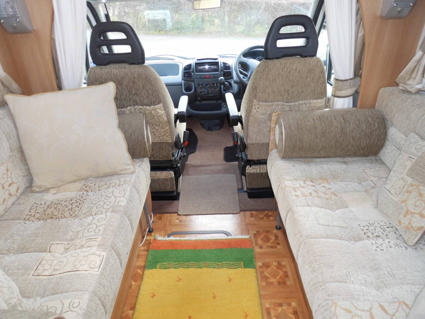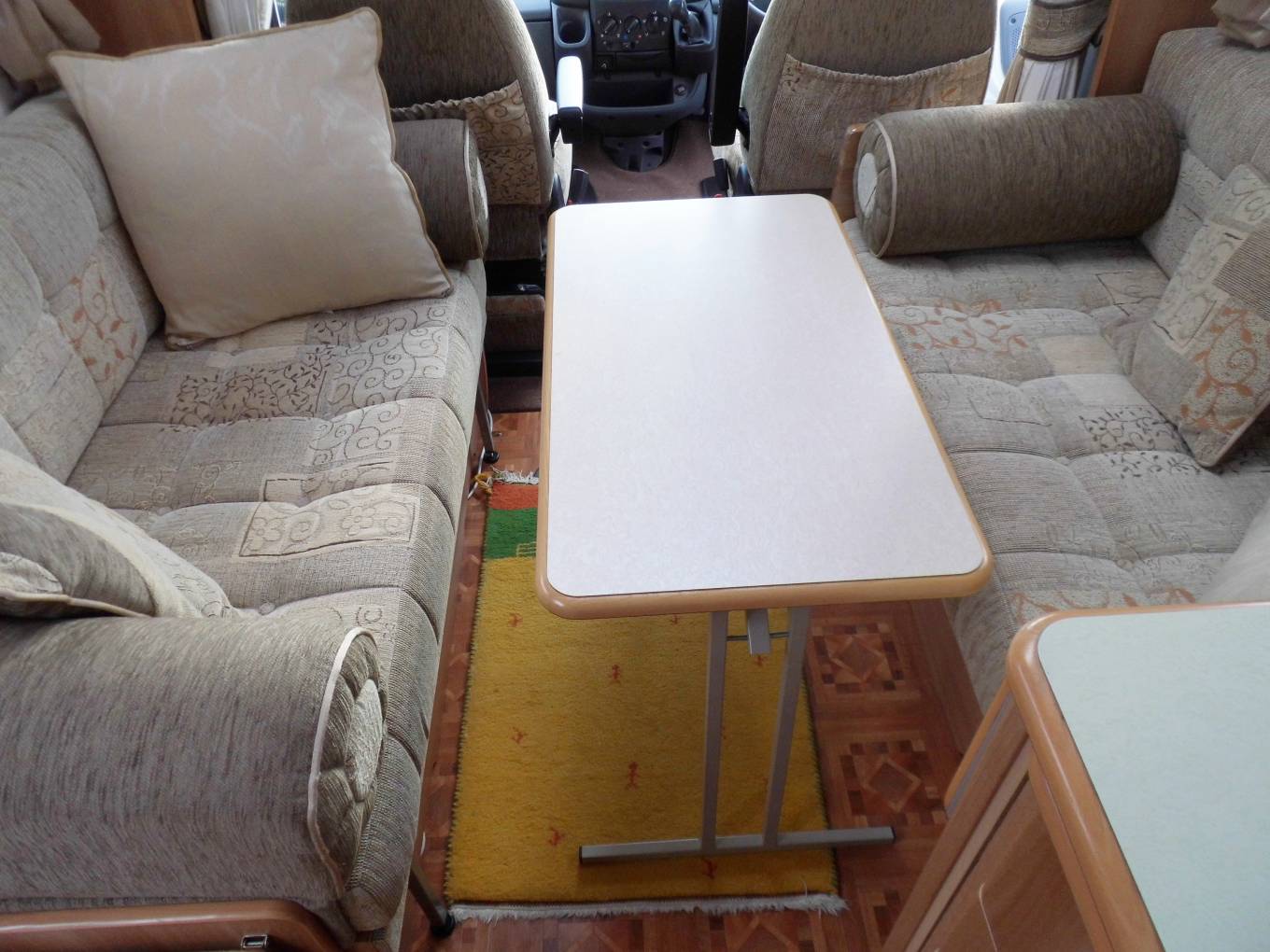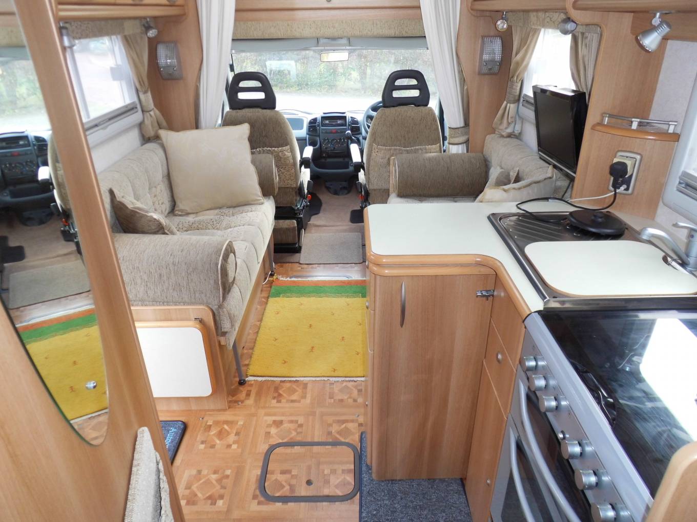 Towards the front of the motorhome you have 2 large side facing sofas providing plenty of seating space and at night time these convert in to a double bed. There is a freestanding dining table that sits between the 2 sofas and both front seats swivel if you have guests in for dinner. The lounge area also has a TV /DVD player that is included in the sale.