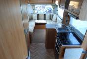 At the rear you have a good size U shape lounge with overhead locker space and the generous skylight throws in lots of natural light making it a lovely place to relax in. At night, the sofas easily convert in to a comfortable double bed.
