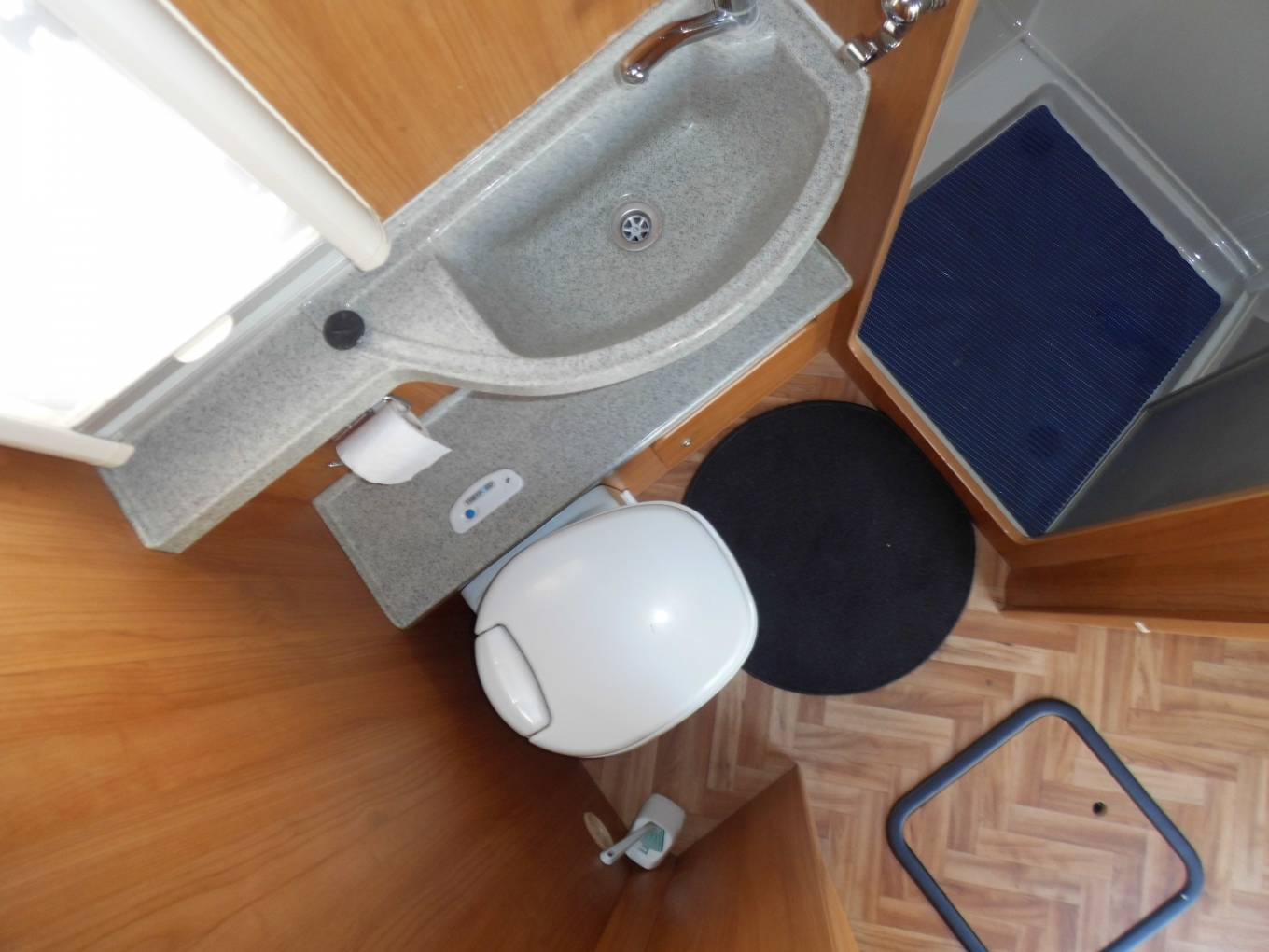 The bathroom has a separate shower with screen, so you won't suffer any of the unpleasant wet room experiences of wet toilets and soggy loo rolls. There is a toilet, wash basin with mixer tap and overhead storage space.