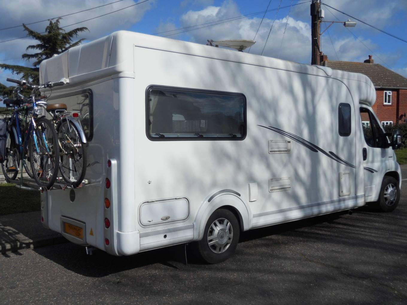 Built on the excellent Peugeot Boxer chassis, this motorhome is a joy to drive, and weighing in at 3500 kg it can be driven by anyone on a standard driving licence. It has a 2.2 diesel engine, cab air conditioning, electric windows and mirrors and a 6 speed manual gearbox. It also comes with a bike rack, corner steadies, twin gel batteries, a wind out awning and a Cat 1 Cobra alarm.
