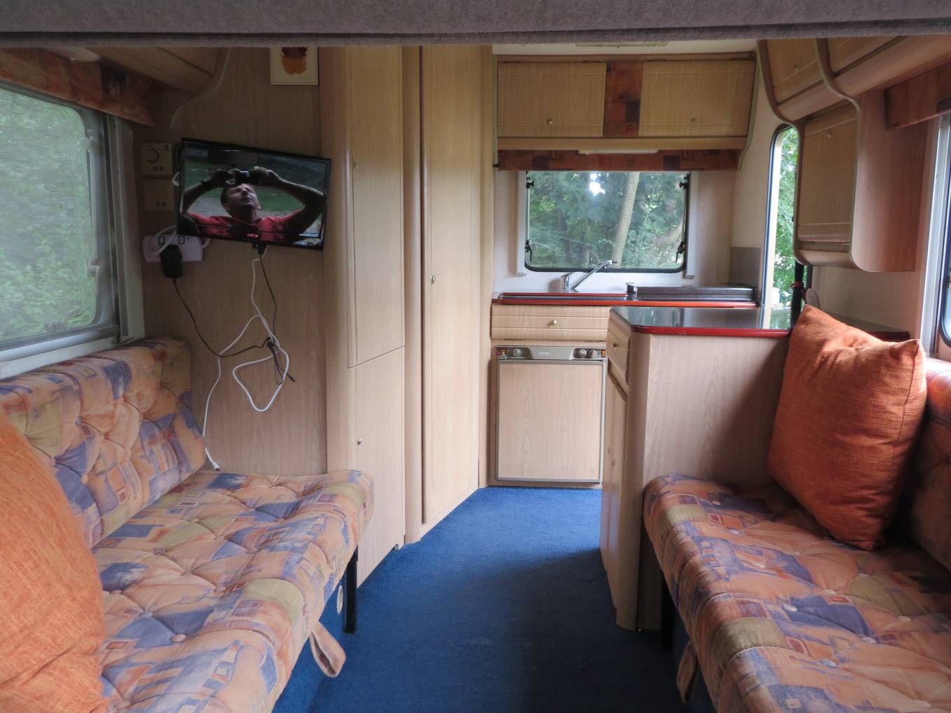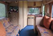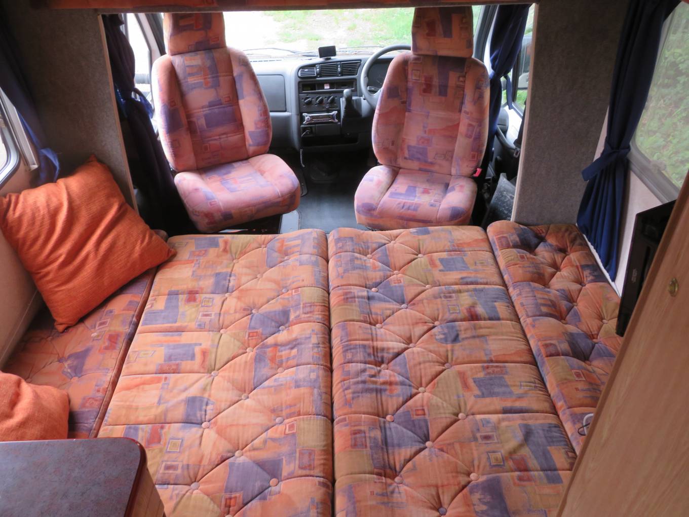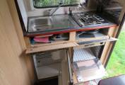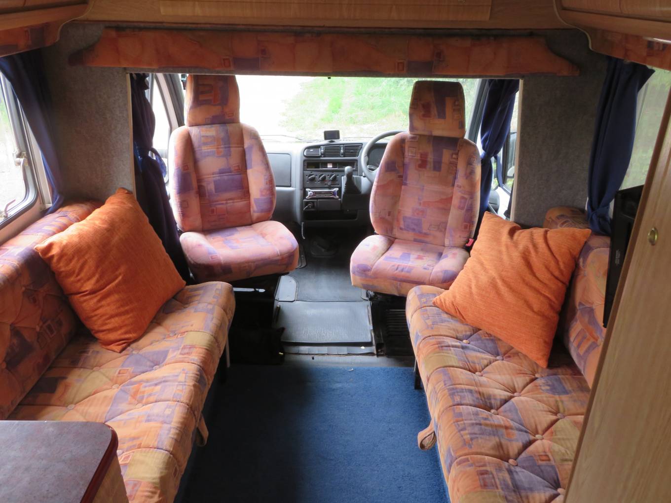 Firstly, we start at the well equipped kitchen. The kitchen consists of a 4 ring gas burner, wash basin, drainer, 3 way fridge, grill and oven. Adjacent is the washroom, this includes a toilet, wash basin and shower. As we move forward through this well laid out motorhome we come to the dinette. The dinette consists of 2 double benches that convert into a double bed, 2 swivel seats and a table. This Motorhome makes brilliant use of the space it has and has been well looked after. The fridge and heating system have both been fully refurbished, a new Thule wind out awning installed. Sadly house move forces sale.