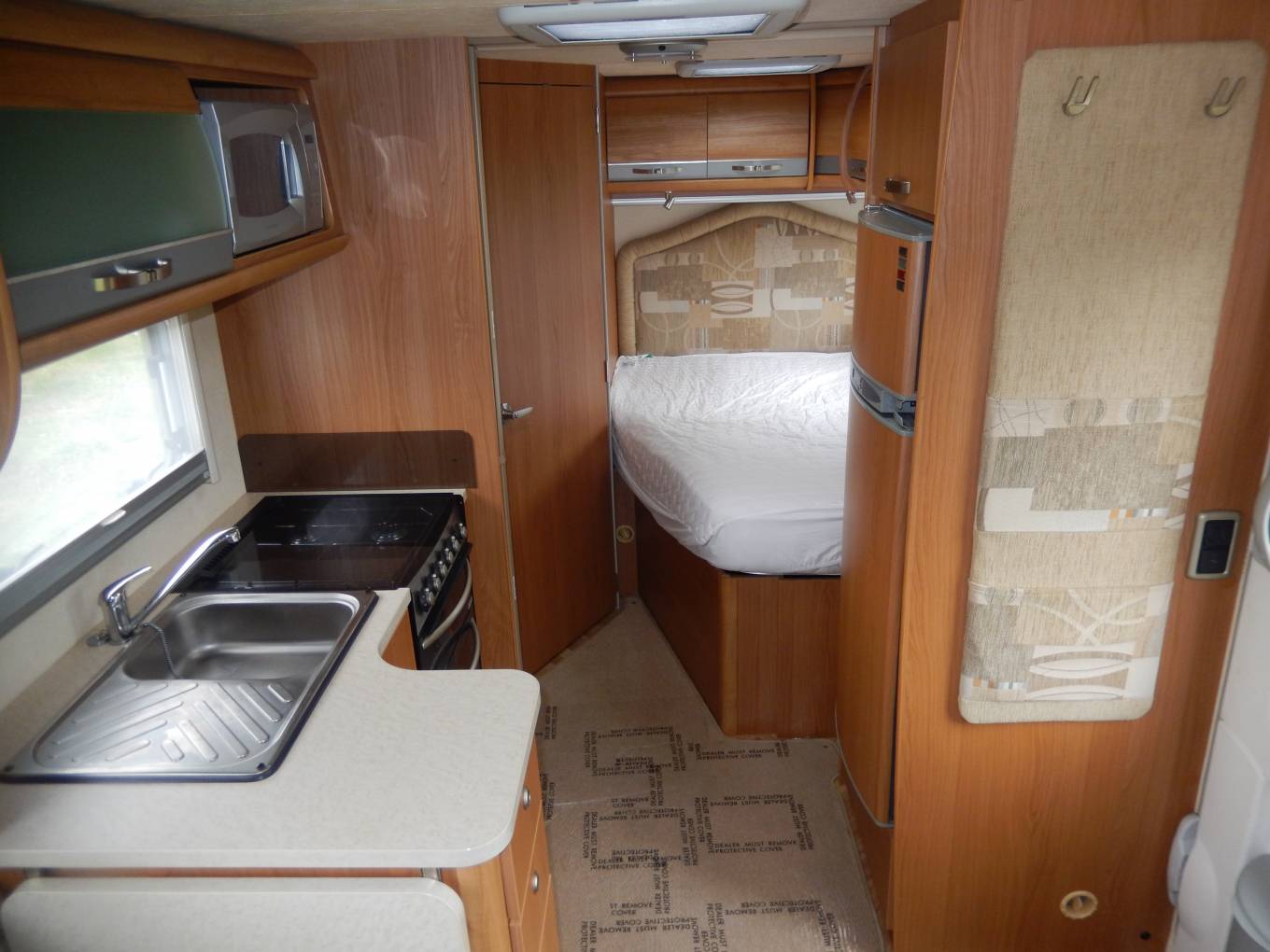 Here we have a 2009 Autocruise Startrail based on a 2.2 Fiat diesel with a 6 speed manual gearbox. This motorhome is both spacious and very light inside with lots of windows and skylights letting light in and also light coloured wood and upholstery giving it a clean and fresh feel. The main feature is its rear fixed bed that caters for 2 of the 4 berths. Just to the side of the bed you have your washroom which includes a toilet cassette, shower and sink with taps. With having a wardrobe and a sliding fabric door in this area it can be closed off to make a bedroom with en-suite. Moving into your kitchen area there is a sink with taps, full size fridge freezer, full oven with grill, 3 point gas hob and 1 electric ring. finally moving into the main living area you have two bench seats that pull out into a double bed to sleep the final 2 of 4 berths. You also have the capabilities to swivel the two captain seats therefore allowing for more people to be catered for in this area. For more information or the extended photo file please email or call Aston Marsh on 01623 900063 or 07580 001385.