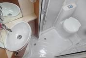 size fixed rear French bed, a clever bathroom with separate shower, a