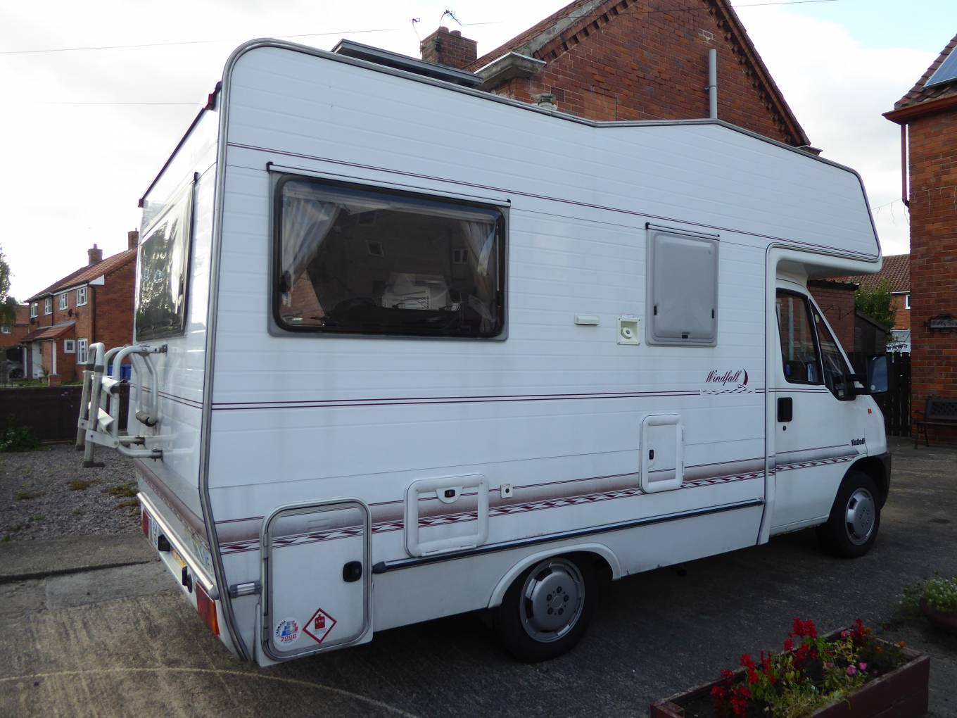 Call with any questions on 01423 609985. PRICE REDUCED. This is a delightful Autohomes Windfall 4 berth, coachbuilt motorhome first registered in May 1999. It has travelled 59815 miles, has a long MOT lasting until August 2019, weighs a relatively light 2800kg and is only 5.38metres long. These are very similar in terms of layout and specification to the Compass Avantgarde 200 also built on the Peugeot Boxer chassis. Externally it benefits from a 70 watt solar panel, LPG tank for heating and cooking, underslung at the rear, which reduces running costs significantly and it had a timing belt change at 52232 miles in July 2015. Internally at the rear is the lounge which makes into a double bed measuring 4ft 7inches x 7ft wide and there is plenty of storage space above. There is also a TV and a control panel for all the appliances. The centre kitchen has a cooker with oven, grill and 3 gas burners, sink and small fridge freezer beneath. The washroom includes a toilet and sink. Upfront the passenger seat swivels and both seats are in good condition, the over cab bed measures approximately 4ft 2inches x 7ft wide. The motorhome has a Carver hot water system and leisure battery. It is in very good order and is available to view near Selby. Part exchanges are welcome on this vehicle. Please call us for additional photos and details. Part Exchanges welcomed on this vehicle, for further information and photos please call us on 01423 609985 quoting Reference 16097.