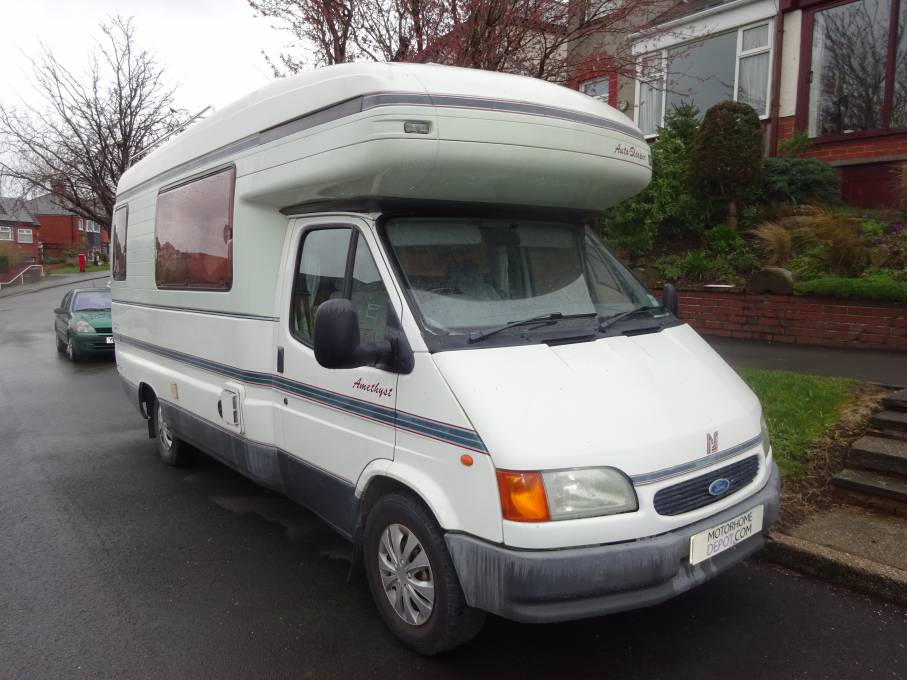 **DEPOSIT TAKEN** Motorhome Depot presents this 4 berth 2.5 ltr, diesel Auto Sleeper Amethyst on a ford chassis. Firstly, we start at the end kitchen. The kitchen includes a 4 ring gas burner, grill, oven, 3 way fridge and wash basin with drainer. Adjacent is the washroom, this consists of a toilet, wash basin and shower. As we move forward through this bright and airy Motorhome we come to the dinette. The dinette is a perfect place to relax and seats 4 comfortably. When the night draws in the dinette converts into large comfortable bed or can be used as 2 single beds. Finally, we come to the over cab bed. This can be used for storage or sleeping for 2. Please call Tom on 01144 055993 for more information and the extended photo file.