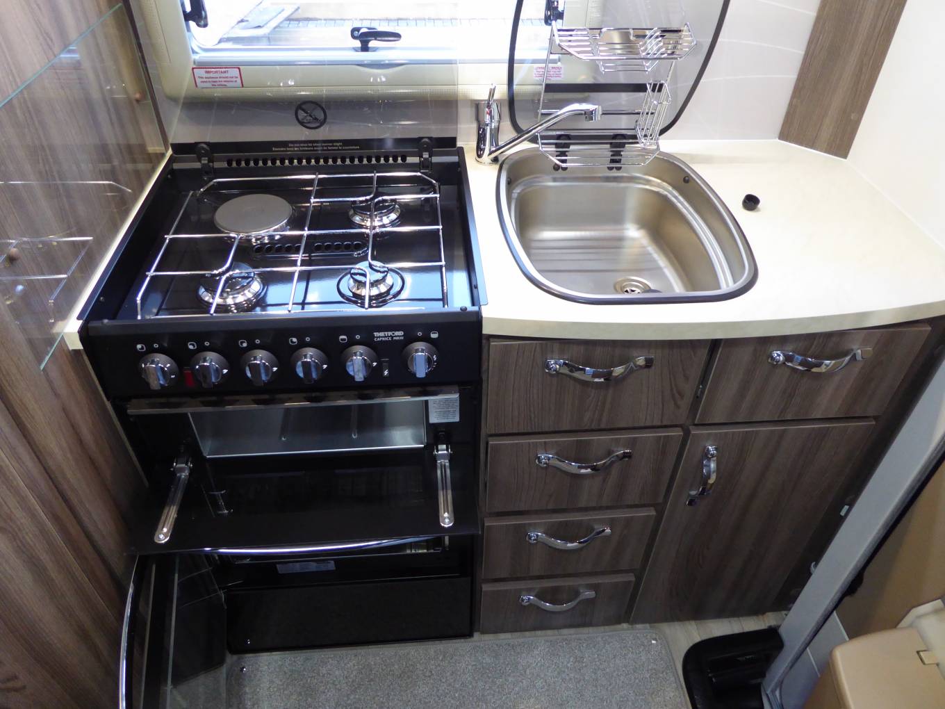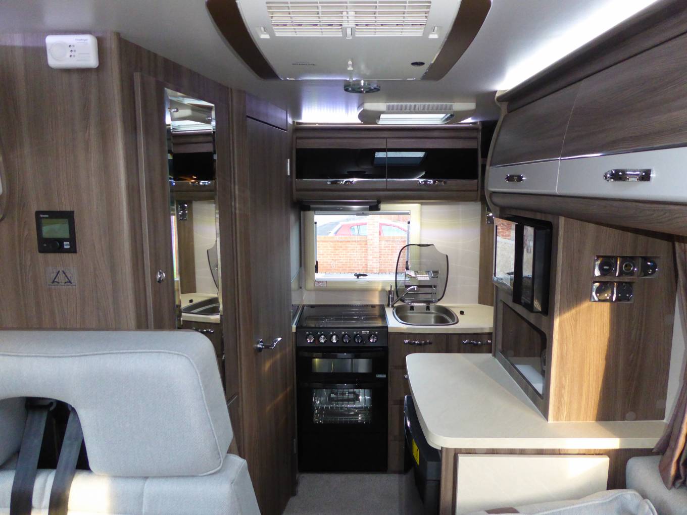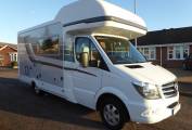 Call with any questions on 01423 609985. Price reduced. This is a quite simply a stunning new motorhome, it has only 59 miles on the clock, was first registered on 9 January 2019 with it being built in 2018. This Auto sleeper Bourton weighs 3650kg, has the powerful 163BHP 2.2 litre engine, sits on a Mercedes chassis and is under 6.5m in length so will fit on most drives and in most parking spaces. It comes with the Premuim pack including winter pack worth approx £4,000 and still has the ‘new’ smell, as you enter. Internally at the rear of this 4-berth motorhome you will find the kitchen including a cooker with oven, grill, 3 gas burners and 1 electric ring and next to this is the sink. In the washroom there is a toilet; the shower cubicle is created by pulling the sink forward easily on a hydraulic pulley system. In the main habitation area there is a sofa on the nearside and opposite is the dinette with 2 forward facing seat belts, which are extra to the standard fit. . This is where the clever people at Auto sleeper have created extra sleeping space. The dinette forms a double bed measuring approx. 6ft x 3ft 4inches, the sofa is 6ft 4 inches in length and makes another bed measuring 3ft 7inches wide. Both the dinette bed and sofa can create one large bed in the forward area of the motorhome. Above the cab is the Luton roof with a double bed suitable for 2 adults. Upfront both seats swivel, with the drivers swivelling due to the folding handbrake lever system, there is a 7-speed DSG automatic gearbox, multimedia centre with radio, Bluetooth and SD port, upgraded reversing clip on camera, front and rear parking sensors. Additional features include Remis blinds and roof windows, Ecomaster clip on mirror monitor, external gas BBQ point, heating blankets for the water tanks, 2 leisure batteries, solar panel, Gemini 931T immobiliser alarm, touch sensitive lights and the Gasit system meaning you can refill the underslung gas bottle LPG gas at many filling stations. It benefits from Truma I-net heating control system, and Truma Aventer air conditioning in the habitation area, both of which can be operated remotely by smartphone. It has Paintseal protection with 5 year warranty, 3 year Mercedes warranty and 6 year habitation warranty. It is in exceptional condition as you would expect for a brand new low mileage vehicle that doesn’t have a mark on it inside or out. This is available to view near Stoke on Trent. Part Exchanges welcomed on this vehicle, for further information and photos please call us on 01423 609985 quoting Reference 88183