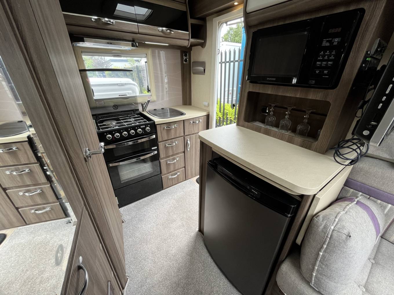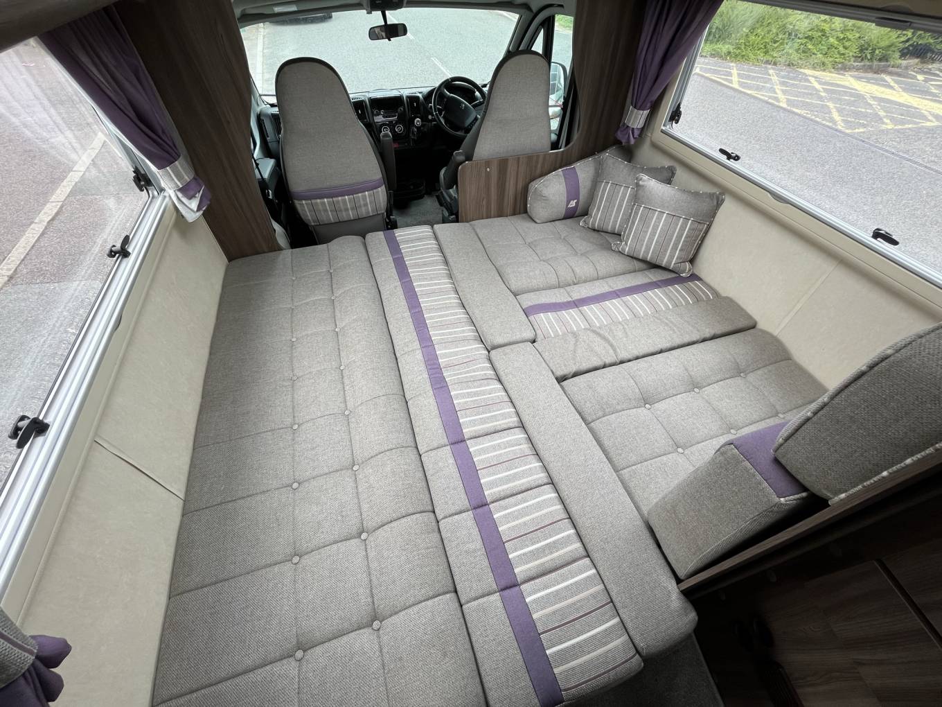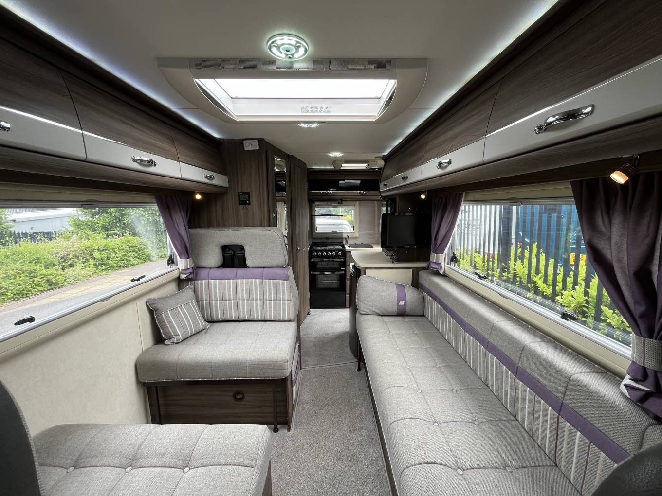 Motorhome Depot present this beautiful example of Auto Sleeper's Broadway EK. Excellent condition both inside and out, with only 2 former keepers from new, service and habitation history and two sets of keys. Based on a Peugeot Boxer with 2 litre, Euro 6 engine and 6-speed manual gearbox. A 5-berth, 4-seatbelts family motorhome with great open plan social living space and fixed over cab bed end-kitchen family motorhome. The Broadway comes with the following specification –• Premium and Winter Pack• Remis cab black-out blinds• Sat-Nav• Colour Reversing camera / Bluetooth / DAB radio• Cruise-control• Electric windows and mirrors• Cab air-conditioning• Steering-wheel controls including phone• 15” alloy wheels• / Dining Area includes –• 2 x swivel front seats• Large longitudinal settee with two facing bench seat opposite. This area can be made up for the evening into a very large double bed or two single beds.• Large over-cab double bed• Stow-away dining table –• 3-burner gas hob with one electric plate,• Gas oven /grill• Stainless-steel sink with mixer tap• 3-way fridge with small freezer compartment• Microwave oven Washroom –• Thetford cassette toilet with electric flush• Washbasin with mixer tap• Storage cupboards• Separate shower area using the hinged vanity unit Also included –• Truma dual fuel blown air heating and hot water unit• Removable carpets throughout• Roof mounted solar panel• Refillable LPG Tank• External 240v socket• External BBQ point• External TV aerial socket• Thule wind-out awning• Bike-rack or external storage box