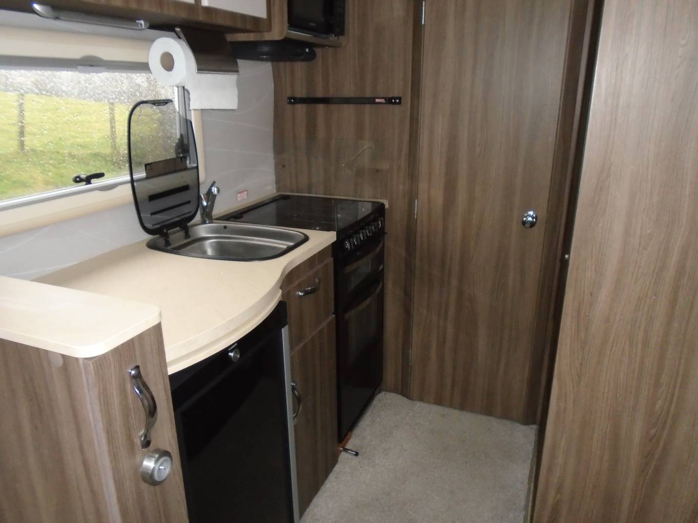 there is also a pull out worktop extender, the fridge was replaced a few weeks ago and is now a brand new 3 way Dometic fridge freezer. above next to the storage cabinets is the Daewo microwave oven.