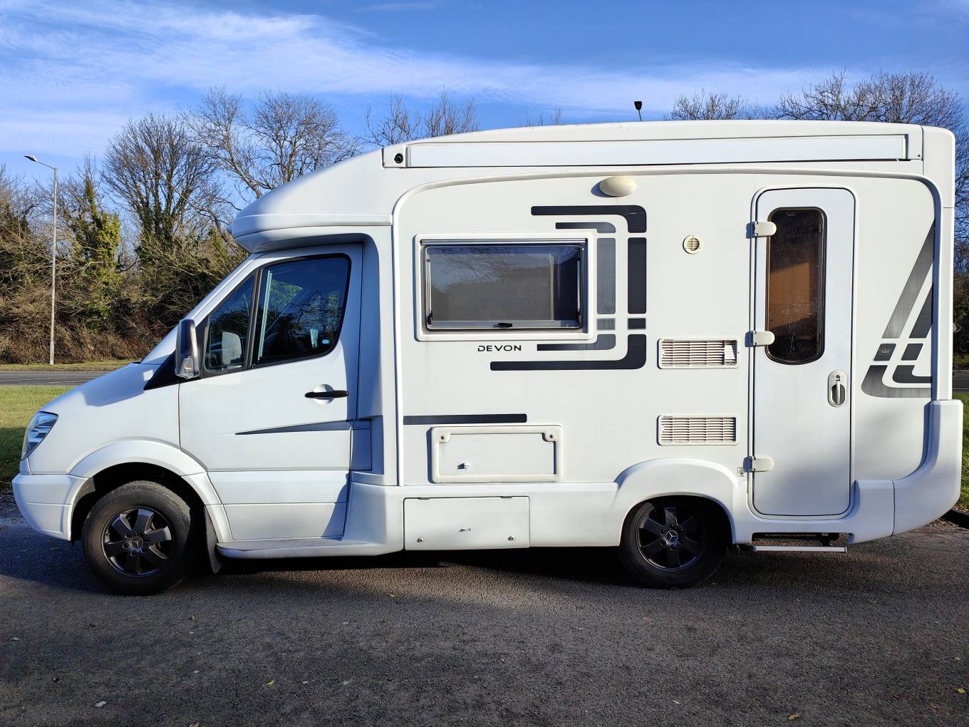 This is an outstanding example of Autosleepers top of the range Devon conversion based on the Mercedes 2.2 diesel with a six speed Automatic gearbox. The sub 6.0 metre 2 berth motorhome weighs in at 3500kgs so can be driven by all. This is a traditional layout with a rear kitchen and longitudinal benches to the front with 2 rotating captains seats. The Autosleeper specification is excellent from the factory but this example includes a fully automatic Oyster satellite dish, reversing camera, gaslo refillable gas bottles, solar panel, air suspension, towbar, cycle rack, awning and a tv. Recent full engine service and gearbox service. 40k miles from new. MOT until july 23 and based in Kent.