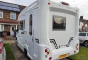 Outside you have a wind-out sun canopy/awning, four very good tyres put on in January 22, alloy wheels, locker to access the under-seat storage area, Gas locker, Thetford locker and a lower locker where the mains hook-up cable and hose pipe are stored.