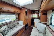 Truma gas and electric blown-air central heating and hot water, wood effect flooring with loose fit carpets, black-out blinds and fly-screens throughout.