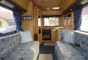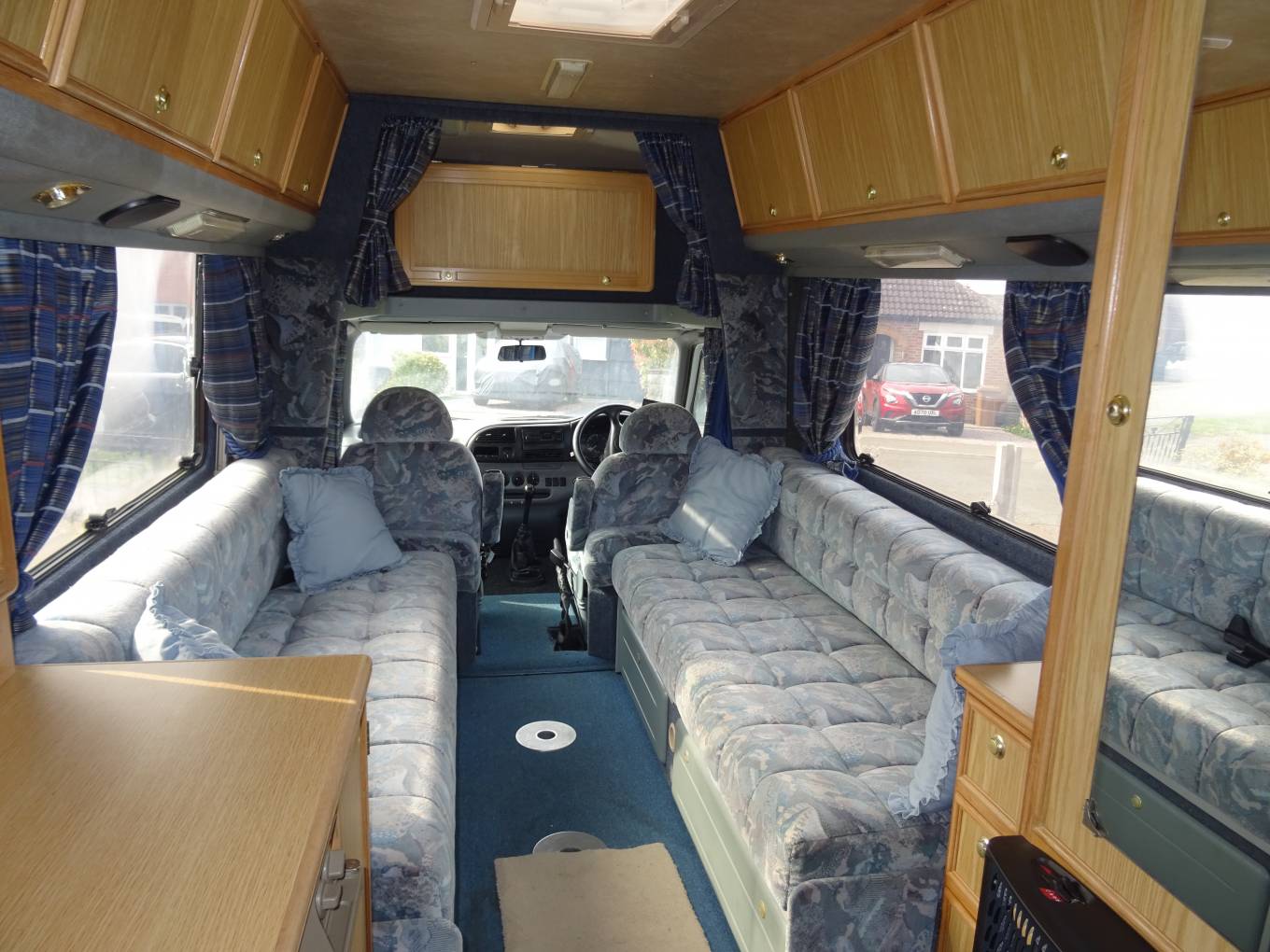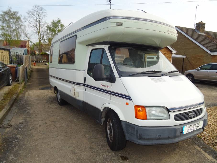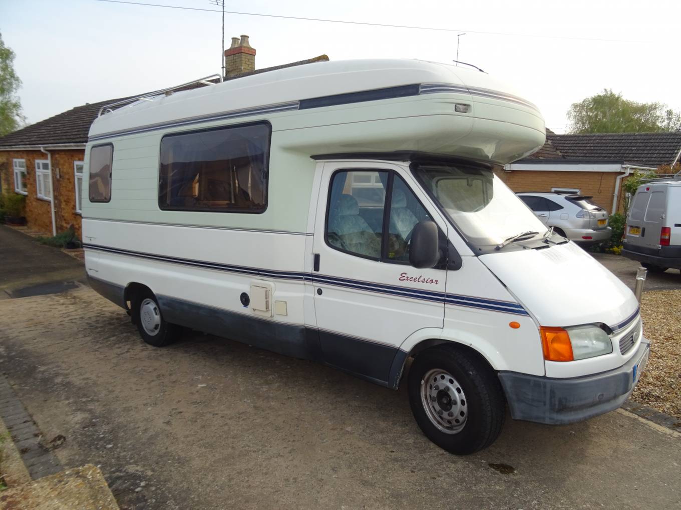 This lovely Auto Sleeper Excelsior 4 Berth 1999 with only 53781 miles and based on the Ford Transit chassis. The motorhome has 4 belted seats 2 belts are lap straps. High build quality throughout and large windows that gives lots of natural light. The 2 long lounge settees can create either 2 long single beds or a large double. This area is also a good sized dining area that is great for relaxing in. The above cab bed is a good size bed that will fold away and make into a storage area. With the Autosleeper there is plenty of locker space, a full kitchen with oven, grill, fridge with small freezer. Good sized washroom with shower and fold away sink. This motorhome has a lovely warm feel inside and is ready to go. MOT 17/05/2024. Side window has a small crack.