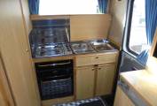 consists of 4 burner gas hob, grill, oven, handwash basin and a 3 way fridge.