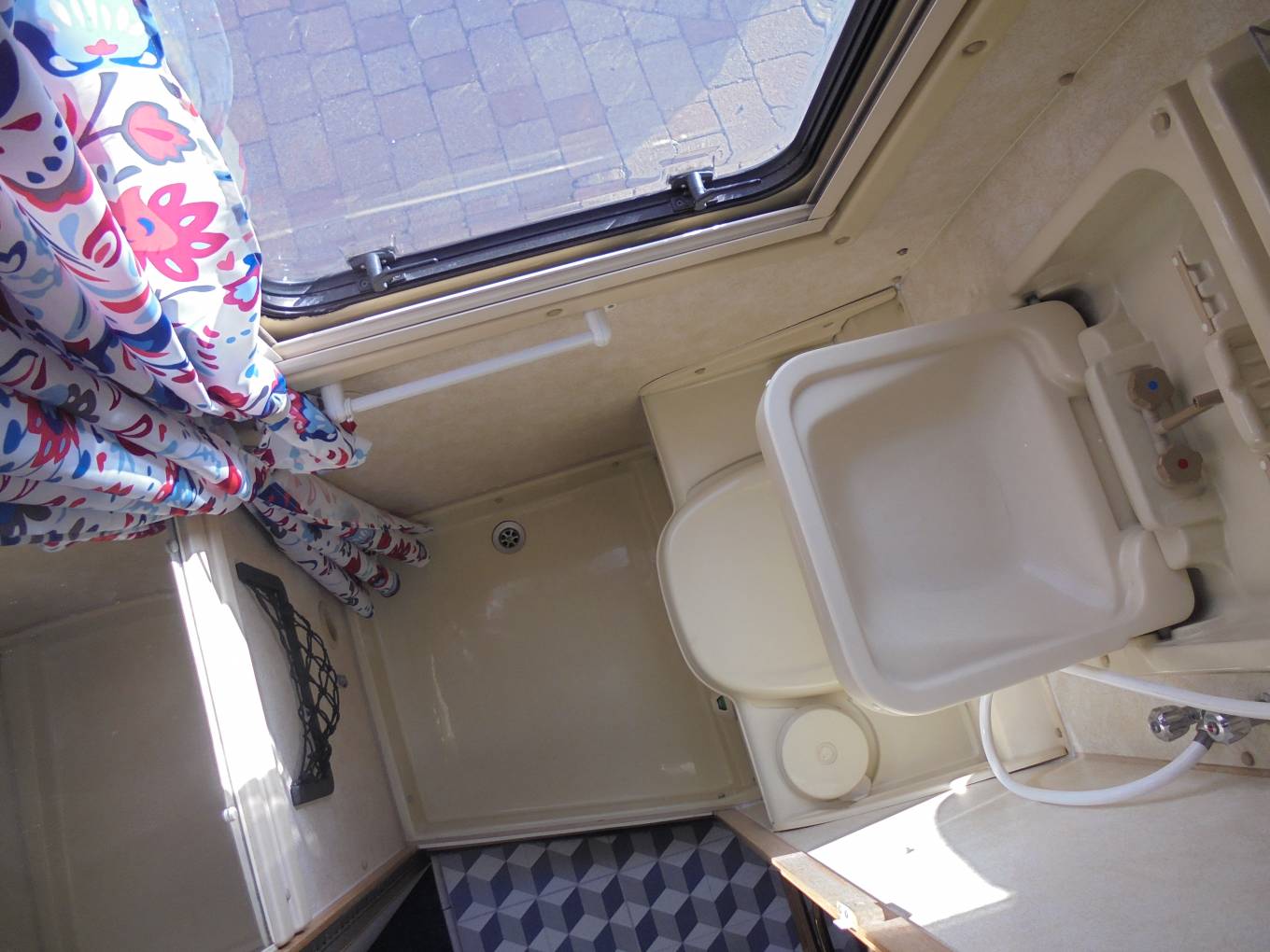 Adjacent to this is the washroom that has a Thetford bench toilet, drop down