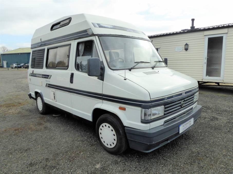 Call with any questions 01423 609985. These are one of our favourite motorhomes, it is an Autosleeper Harmony that has 64295 miles on the clock, first registered in 1993 and is a well-designed campervan with plenty of headroom inside. Built on the Talbot Express chassis it measures approximately 16ft in length including the rear attachments and around 7ft 9inches wide. Internally at the rear you will find the galley kitchen which includes a stove with 2 gas burners, fridge and sink. Opposite is the washroom which has a fixed position toilet, pull down sink and hot and cold taps for the shower. Overall there is plenty of storage space throughout this motorhome. As you move forward into the centre dinette there are multiple configurations that can be made as you can see from the extra photos. You can swivel both front seats and use 2 tables to enables 4 people to sit and eat comfortably. You can turn the 2 travelling seats which both have full seatbelts into single beds; the bed can be made longer by use of the swivel seats up front. The travelling seats can also be turned into a double bed with the addition of the 2 table tops. Upfront you will find the 5-speed manual transmission, power assisted steering, radio/CD player and 2 swivel seats. To make this motorhome 4 berth there is the facility which make up the double bed above that measures approximately 5ft 10inches x 4ft 3 inches. This is a great campervan which would suit people who are new to motorhoming, it has an MOT lasting until March 2020 and should be seen at the earliest opportunity near Easingwold, North Yorkshire. Please note this vehicle is owned by a dealer, as a potential buyer, should you purchase this vehicle, if the vehicle is not as described, of satisfactory quality or fit for purpose you may have a claim under the Consumer Rights Act 2015. Part Exchanges welcomed on this vehicle, for further information and photos please call us on 01423 609985 quoting reference 92447.
