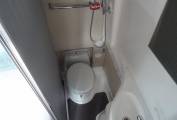 and draws provided throughout the vehicle. The combined toilet and shower alongside
