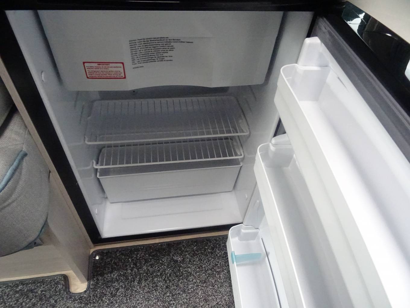 drainer. The good size fridge includes a freezer compartment and is situated under a