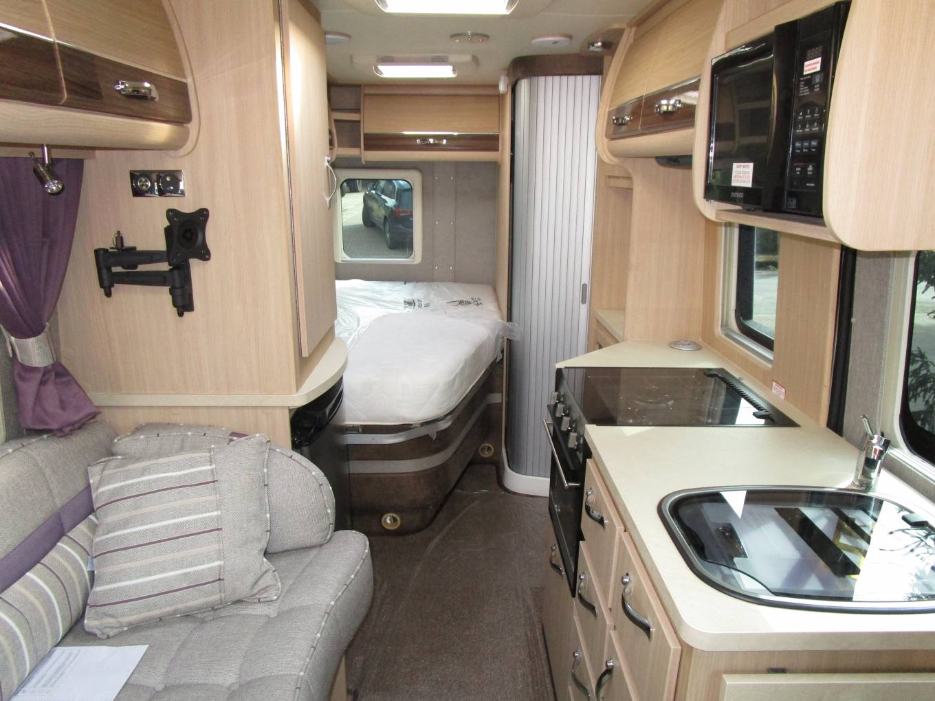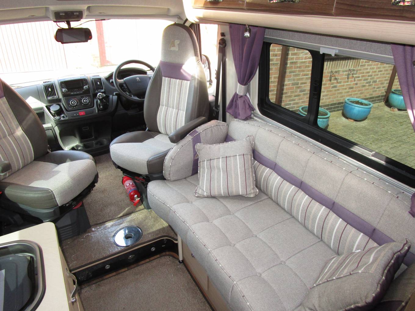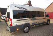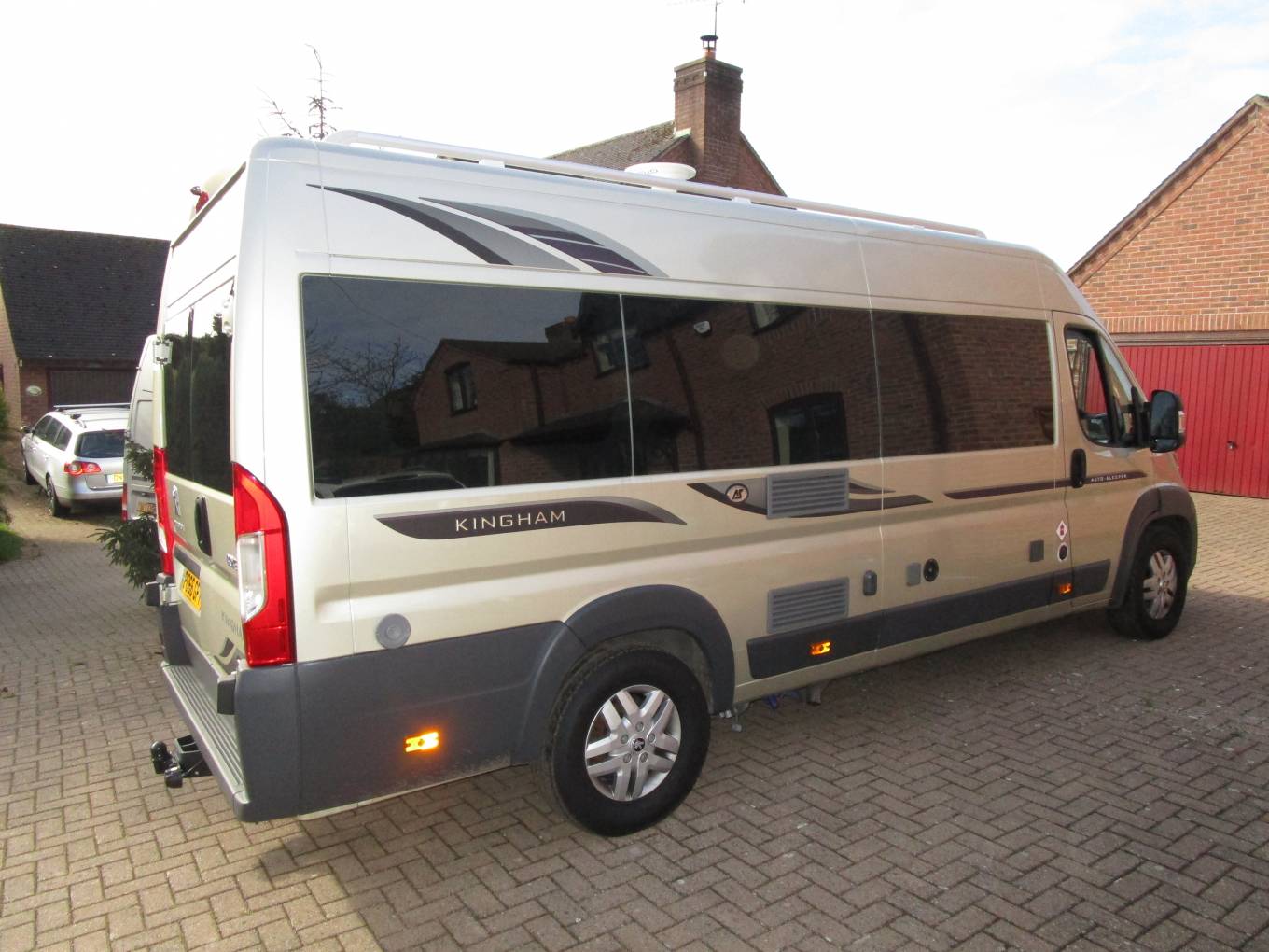 Here we have a beautiful low mileage example of the Autosleeper Kingham fixed rear bed van conversion in a very desirable champagne gold colour. This particular Kingham has seen very little use and still wears the carpet and matress protection film as the current owner has never used the vehicle. The rear fixed bed is well proportioned and benefits from being able to raise to create a more comfortable position for watching TV or reading. Beside the fixed bed is a washroom which houses a shower, hand basin and cassette toilet, there is a small vanity unit just outside the washroom with a mirror and storage for toiletries. Moving towards the front of the vehicle there is a well equipped kitchen with a cooker complete with 3 burner hob and combination oven and grill, there is also a sink, microwave and a good sized fridge with ice compartment. To the front of the vehicle is a lounge area that can comfortably seat four by utilising the two swivel front seats, this area also creates a second good sized bed. This particular Kingham also features Air Conditioning, Cruise Control, Cabin Blinds, Alko Air suspension, Towbar, Reversing Camera, Refillable gas, Omnistor wind out canopy awning, Barbeque gas point and Reversing camera. For further details or the extended picture file please call Tom on 07572398972