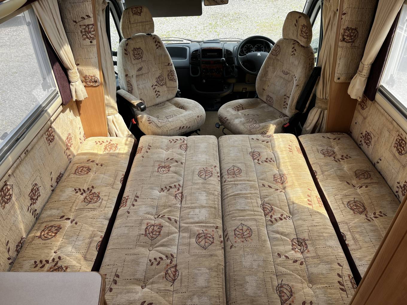 double bed, the 2 front swivel seats can also provide extra length to make 2