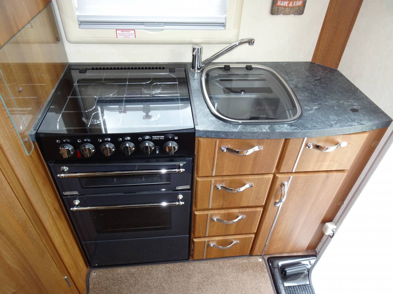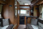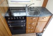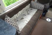 The main living area offers a comfortable open space to relax in whilst enjoying the panoramic views and abundance of natural light gained from the large surrounding windows and skylight. A free standing table, located in its own designated storage compartment, quickly transforms this area into a dining space that can easily seat 6 when also utilising the two captain chairs. Alternatively, wind out the sun canopy and take the table outside for alfresco dining!