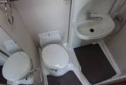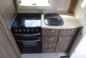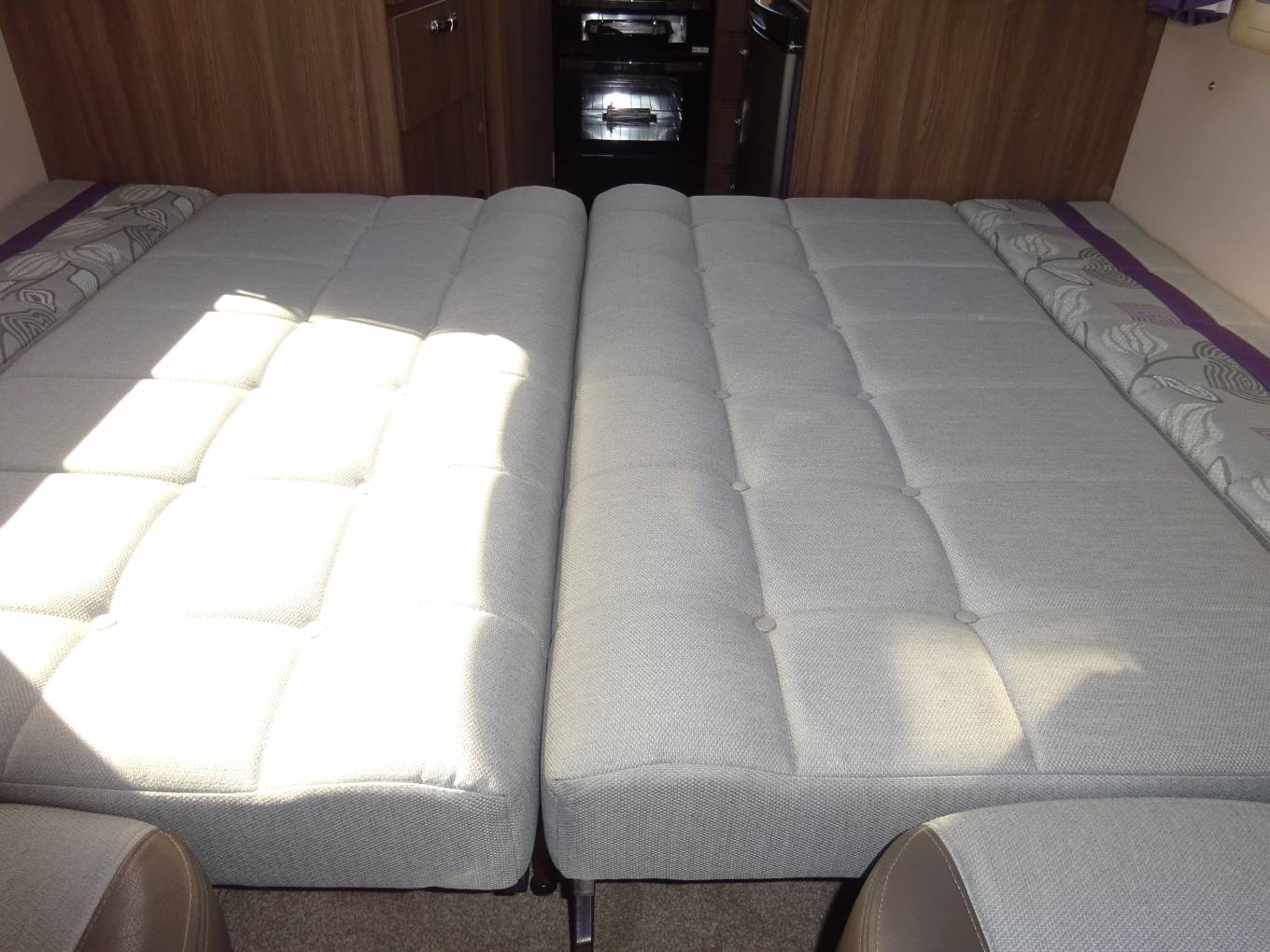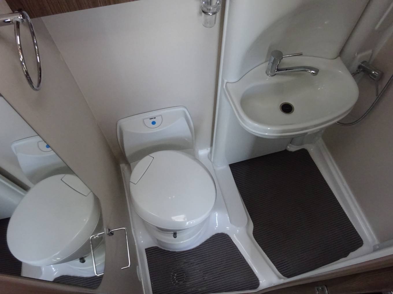 The bathroom is lovely with bright LED lights, a neat feature is the Swing wall shower with integrated washbasin, this give a good size shower enclosure and with the frosted perspex door helps to keep the basin toilet and cupboard area dry. There is also a vanity cupboard with mirrors, chrome fixtures and fittings, storage cupboard, electric flush cassette toilet and fitted anti slip shower mat. A ducted blown air outlet will keep you warm. NB the Winter Pack is fitted.