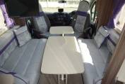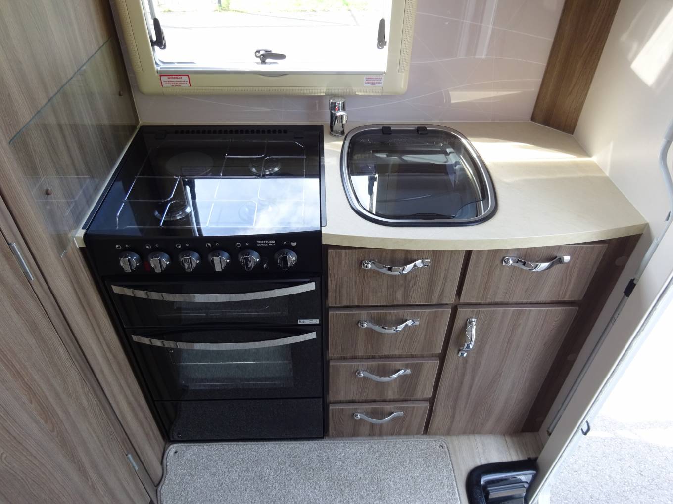 With a modern stylish interior the list of features on this motorhome is fantastic. The layout is front lounge with an end kitchen model, the EK TB LP has a huge lounge, which converts quickly at night to provide a choice between full-length singles or a luxurious double bed. There is a choice of tables, a small pole mounted table or a free standing table both can be used a t the same time for more space. Interior lighting is LED with LED spotlights and roof lighting with a power saving of up to 70% there is also over locker LED mood lighting and foot-well entry step with AS logo light. Very cool. Storage includes Over-cab storage compartments, Spacious wardrobe, Range of high & low-level storage lockers, The cupboards and fittings have a dark wood appearance with chrome fittings. A TV/DVD had been fitted and is included in the sale, the directional aerial and control box are in the wardrobe. The Cocktail cabinet with crystal wine glasses is a nice retro touch.