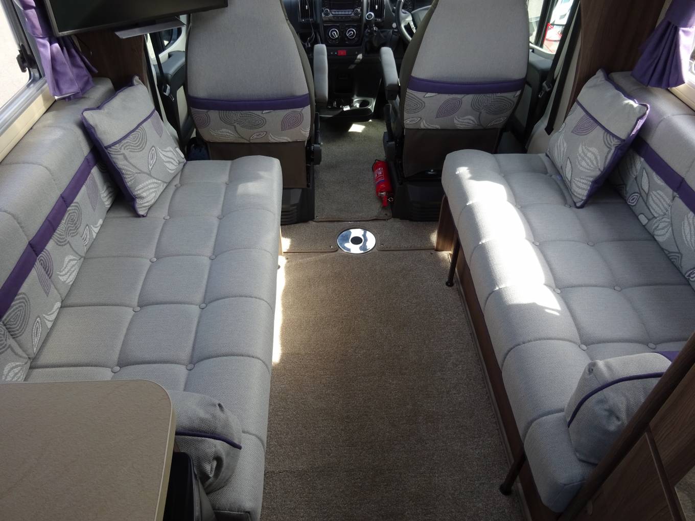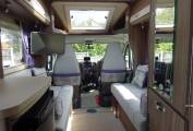 The kitchen area is immaculate, the cooker is a Thetford Caprice MK111 and has a dual fuel hob with 3 gas burners and an electric hot plate. The grill and oven look unused. As does the fitted microwave and fridge with freezer compartment. There is also a 12v extractor fan with down-lighters, kitchen roll holder and fitted draining board. Hot water and heating come from a Truma dual fuel combi blown air central heating and water heater. Truma iNet Control Box is fitted and has it's own control panel. You will need a smartphone and an App to get the best out of that. Worth noting there are no gas bottles needed on this motorhome because a 25 litre underfloor mounted LPG gas tank is fitted. Just fill up at the LPG pump.