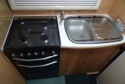 The kitchen is at the rear of the Nuevo with a 3-ring