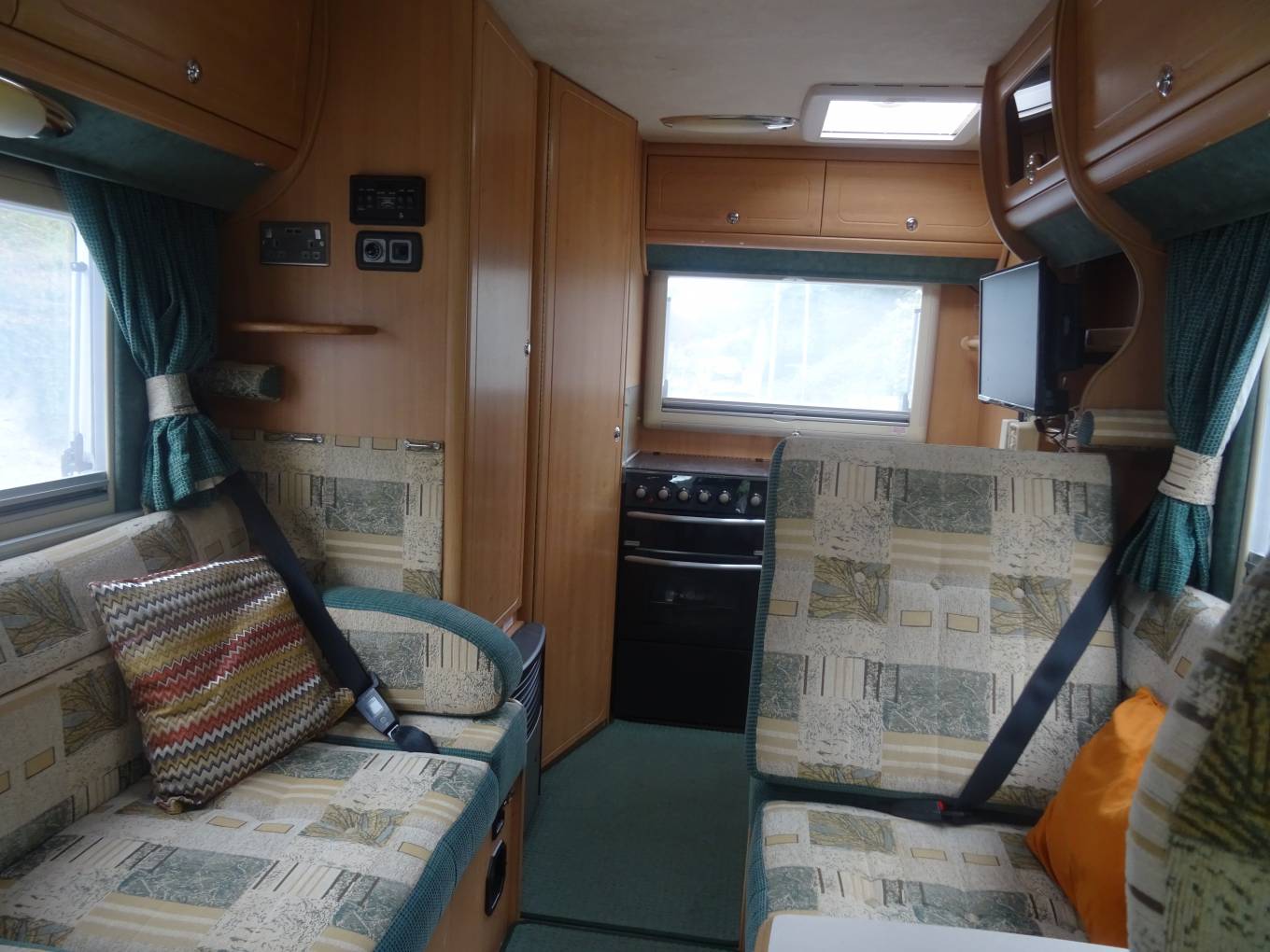 reversing camera, a radio CD player, usb connections and electric windows and mirrors. Ample storage is provided with overhead lockers, the large wardrobe and under seating storage. Externally, we have a Fiamma awning, a bike rack for two bikes, and a tow bar