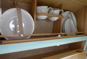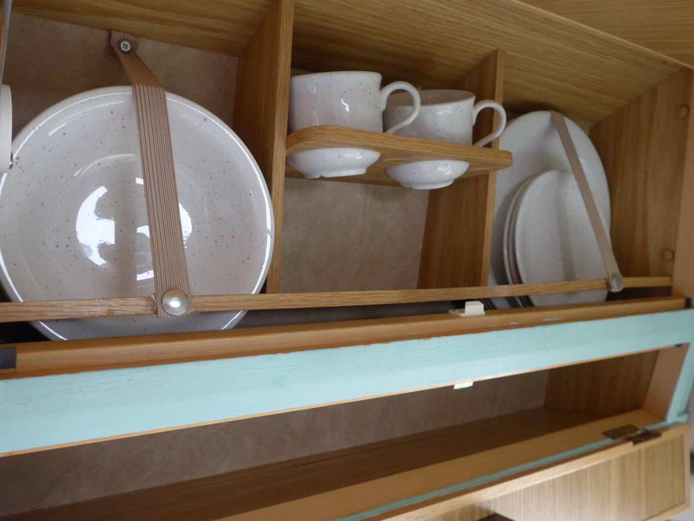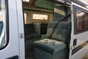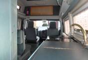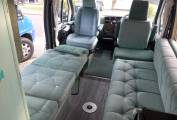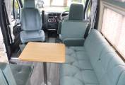 The highly flexible layout consists of captain’s seats in the cab, passenger swivels. Behind is a forward facing rear seat with travelling belt and large side Sofa. This area can be quickly converted into two Single Beds, or one large double bed. One large and one small dining table for flexible living space.