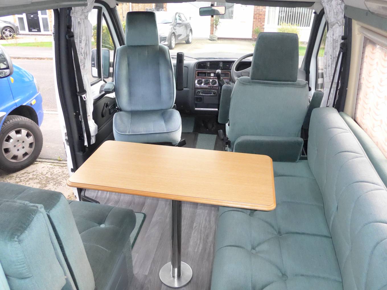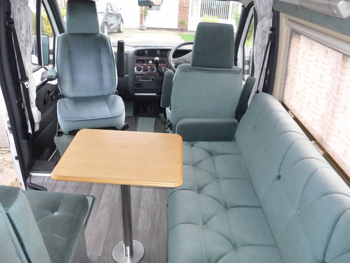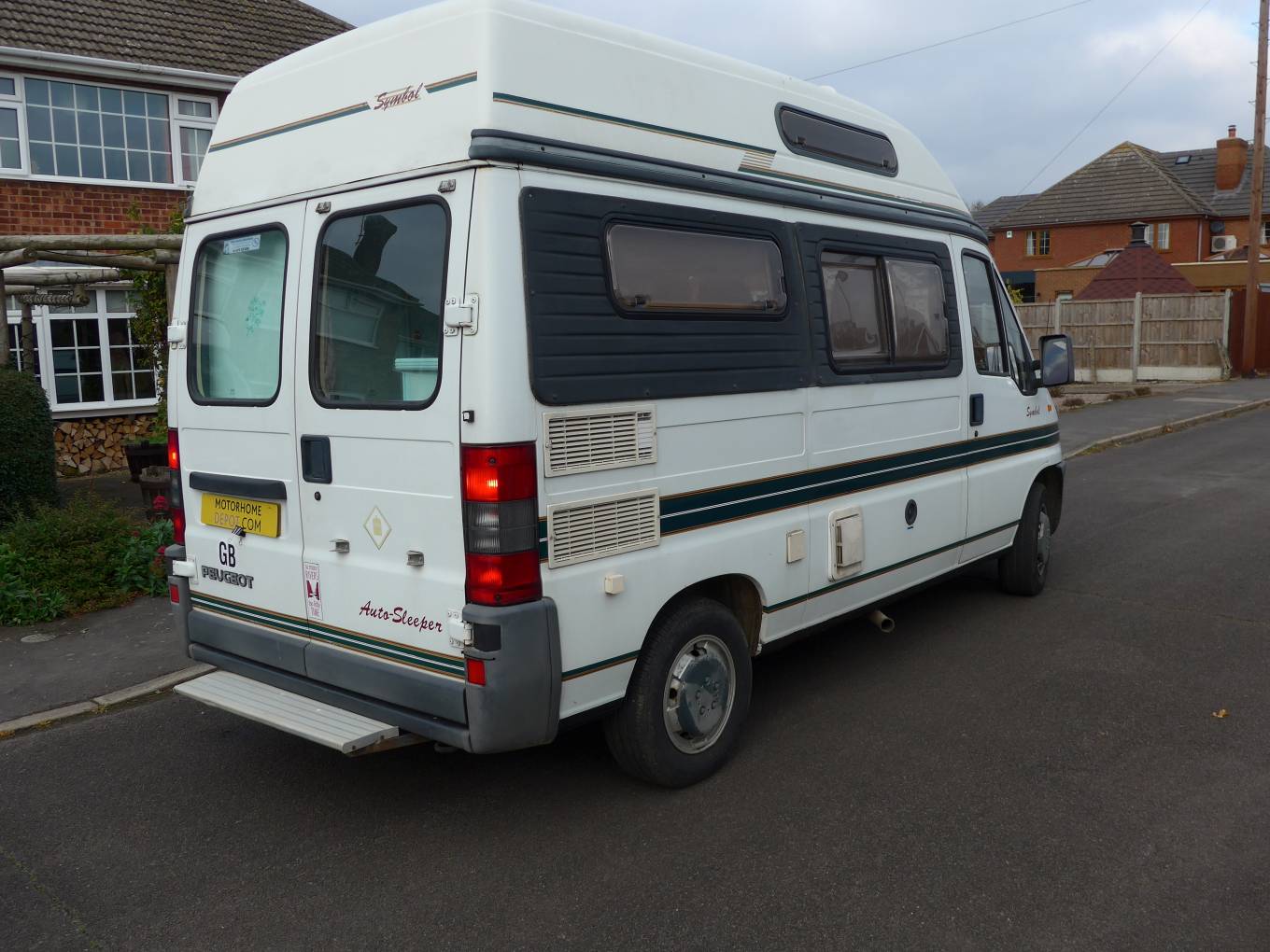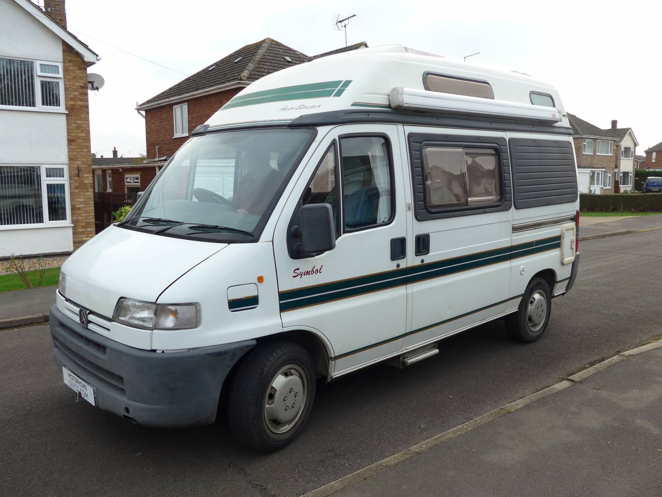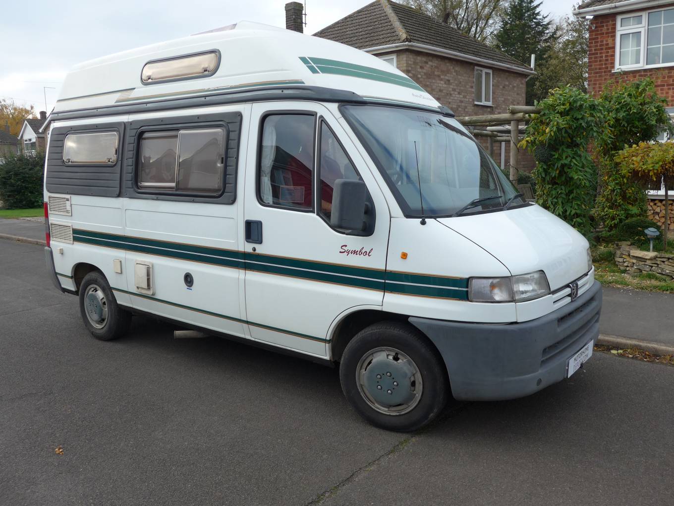 1999 Auto-Sleeper Symbol High Top camper van 2 Berth & 3 travelling seats. Popular layout with 2 Single bed or one Double bed option. Completely self contained with with full kitchen with fridge grill, hob & oven. Washroom with cassette toilet , washbasin and shower. Dining area, awning, Fresh and Grey water tank. Blown air heating and hot water boiler.