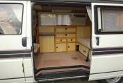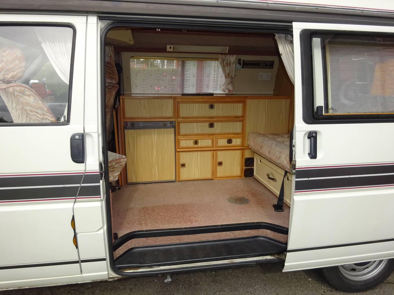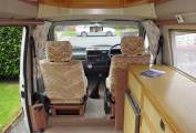 The base vehicle is the Volkswagon T4 with a 2459 cc petrol engine. The van has also been fitted with an LPG conversion which helps with economy. The tank lives under the bed at the back.