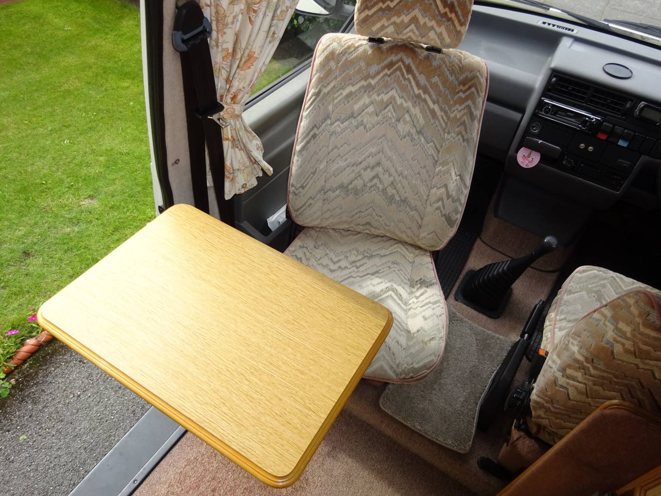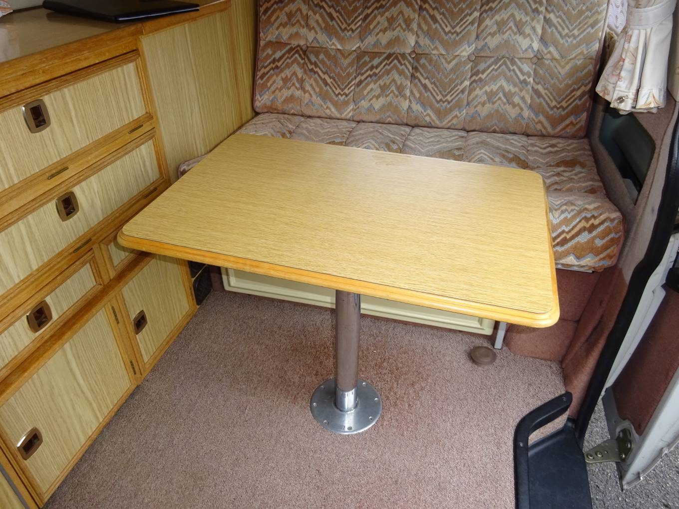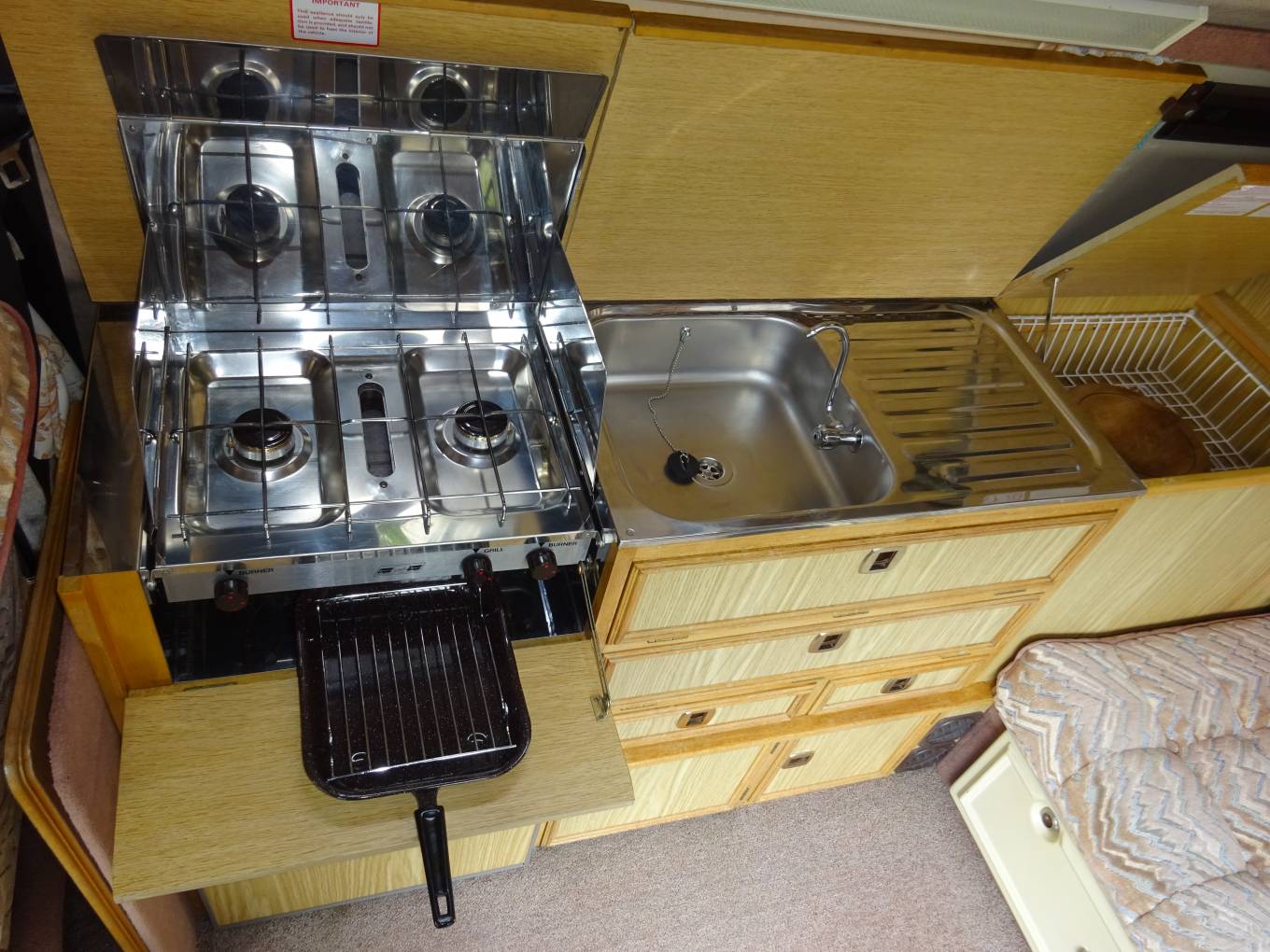 We present for sale this 1992 (J reg) Autosleeper Trident. Layout is a camper van with a rock and roll bed. Looking in from the side door you have the swiveling passenger seat with a small table on your left, the kitchen is in front of you and the folded up rock and roll bed to your right. The kitchen specification includes a 2 gas burner hob, a grill, stainless steel sink with drainer and then a storage unit. The decent size fridge is under the grill. With the 3 lift up lids down there is good workspace. There are 5 cupboards of various sizes under the sink. The gas bottle lives under the wardrobe at the rear. The second, larger table is mounted on a tube in front of the rear seat. There are two seat belts in the back. A pota poti lives in the bottom cupboard. The bed is easy to pull out and gives a space about 6' 2" long by 3' 8" wide. More storage is available in the small wardrobe and the upper front cupboards. There are two sections not shown in the photos that forms a small double above the lounge area. Current owner has used this area to store bedding. High level windows in the loung give a nice airy feeling. Condition is very good for the age of the vehicle, seats are clean and tidy with only the rear shelf showing its age. Hot air heating is from the Propex system.