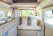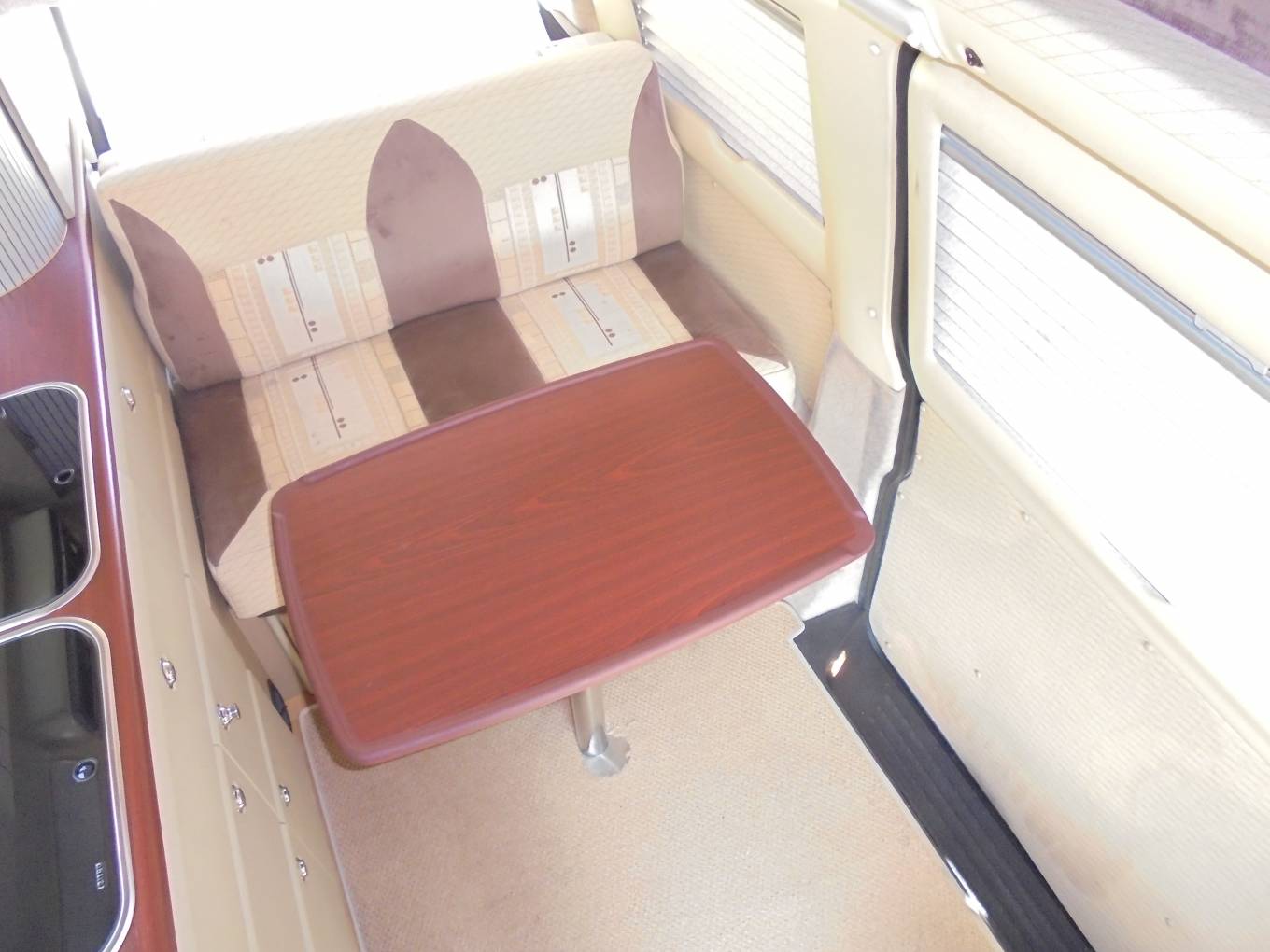 The lounge area is the classic VW design with bench seat, two lap and Diagonal rear seat belts, comfortable bed, eberspacher heating,fridge/freezer.2 burner hob and grill,leisure battery and charger,porta potti, lighting as well as ample storage.