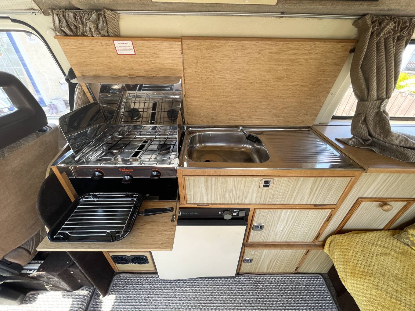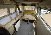 This lovely Autosleeper conversion is in great condition and offers an excellent layout. To the back is a rear bench that seats 2 comfortably which converts to a double bed. To the rear there is also plenty of storage along the side, below the bed and in the wardrobe. Next, we are greeted by the kitchen area that consists of a 3 way fridge, 2 ring gas hob, grill, wash basin and draining board. Finally, above in the pop top there is room for 2 to sleep completing the 4 berth.