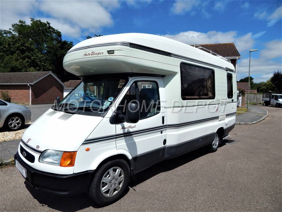Autosleeper Amethyst , first registered in September 1999, based on the ever popular Ford Transit 2.5D Chassis, having only covered 55532 miles from new and only 3 owners, this a 4 berth Motorhome with the benefit of four travelling seats. The last owners have looked after it since 1999. There is a big file of service history over the years most recent service 02/17 at 51662 with more recently a new exhaust system & work to the 12v/240v system on the fridge. The cab benefits from: Power Steering; Electric Windows Front; Aftermarket Cruise Control System; Ford Tape Player & FM Radio head Unit. The overall impression of this vehicle is that it has been well loved and will make the next person and enduring Motorhome for 2 Adults and 2 smaller children.