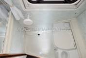 The washroom has a good sized shower tray, a Thetford cassette toilet, a fold-down washbasin with mixer tap, a separate tap for the shower handset that mounts on a rising rail, plus there's a mirrored medicine cabinet.