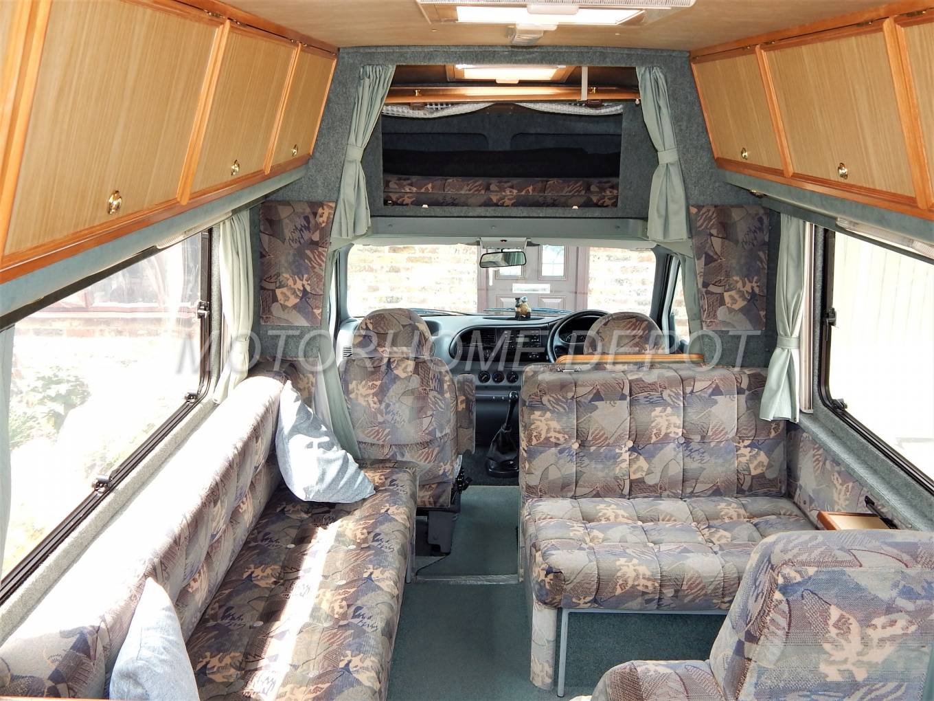 The lounge area has full dinette with two small opposing sofas & a large side sofa. The dining table is stored behind the drivers seat while not in use. You could easily seat 6 while entertaining on site. There is also a small coffee table for occasional use. At night this area is very versatile in that you could use the Side sofa as single bed with the addition of a small double by pulling the dinette together, or you can make the whole area into a massive double bed.