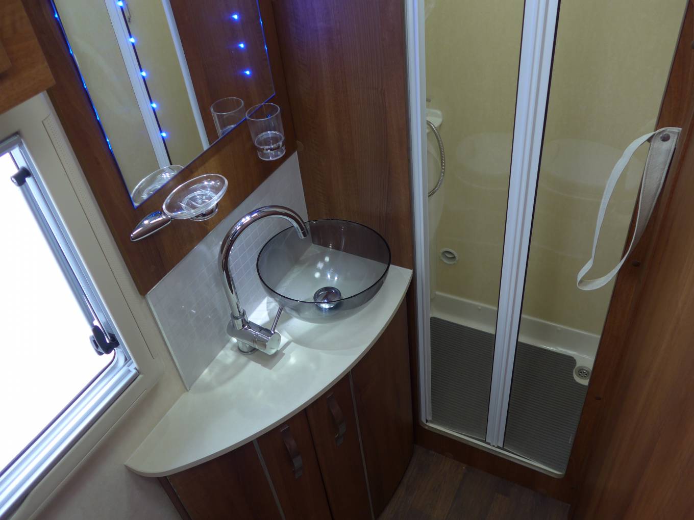 Spacious and Luxurious Washroom with separate shower enclosure, cassette toilet and washbasin.