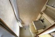 an integrated shower, Thetford cassette toilet and pull-down sink.