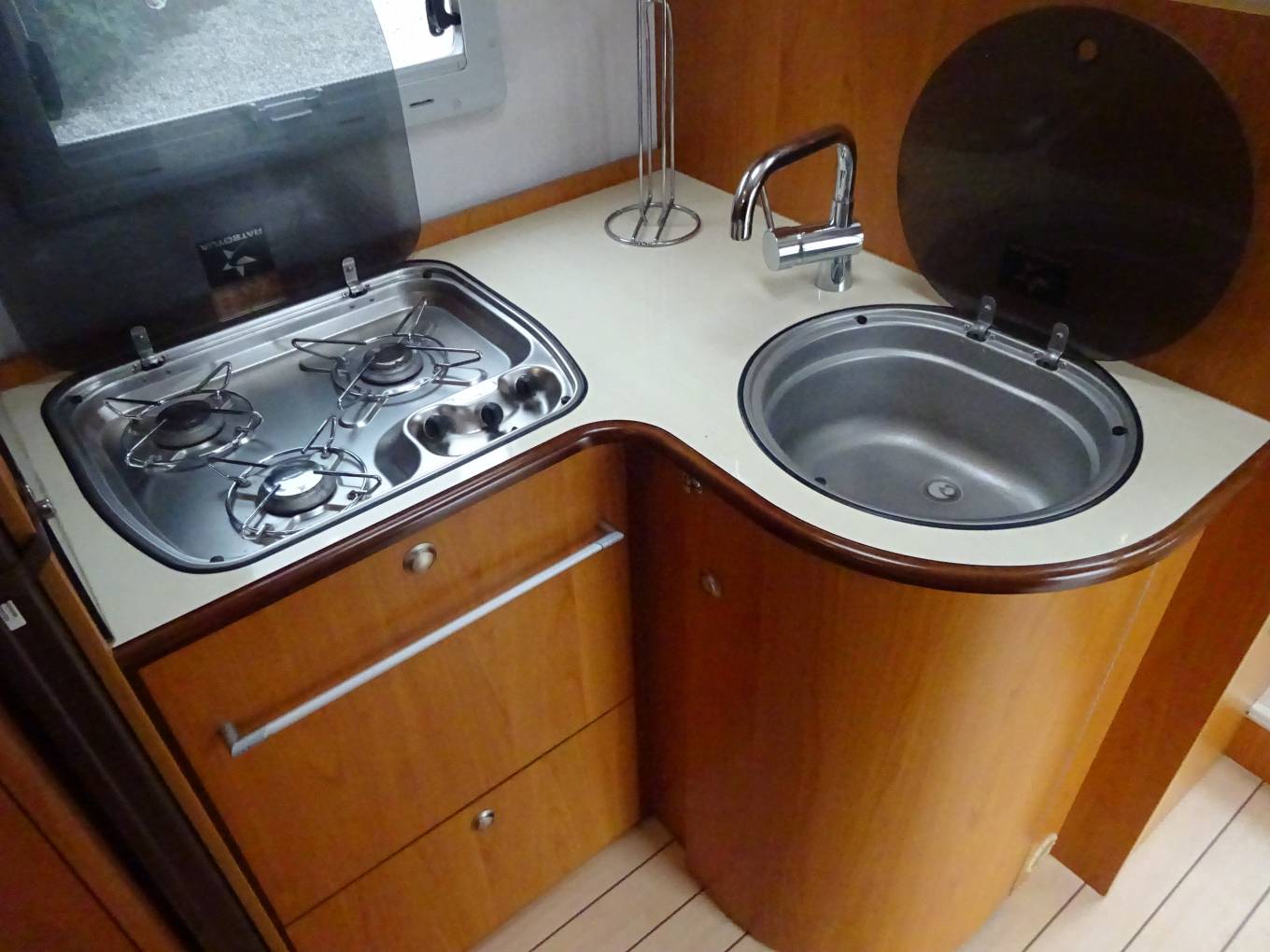 The french bed is comfortable, with masses of storage beneath which can be accessed from inside and out.
