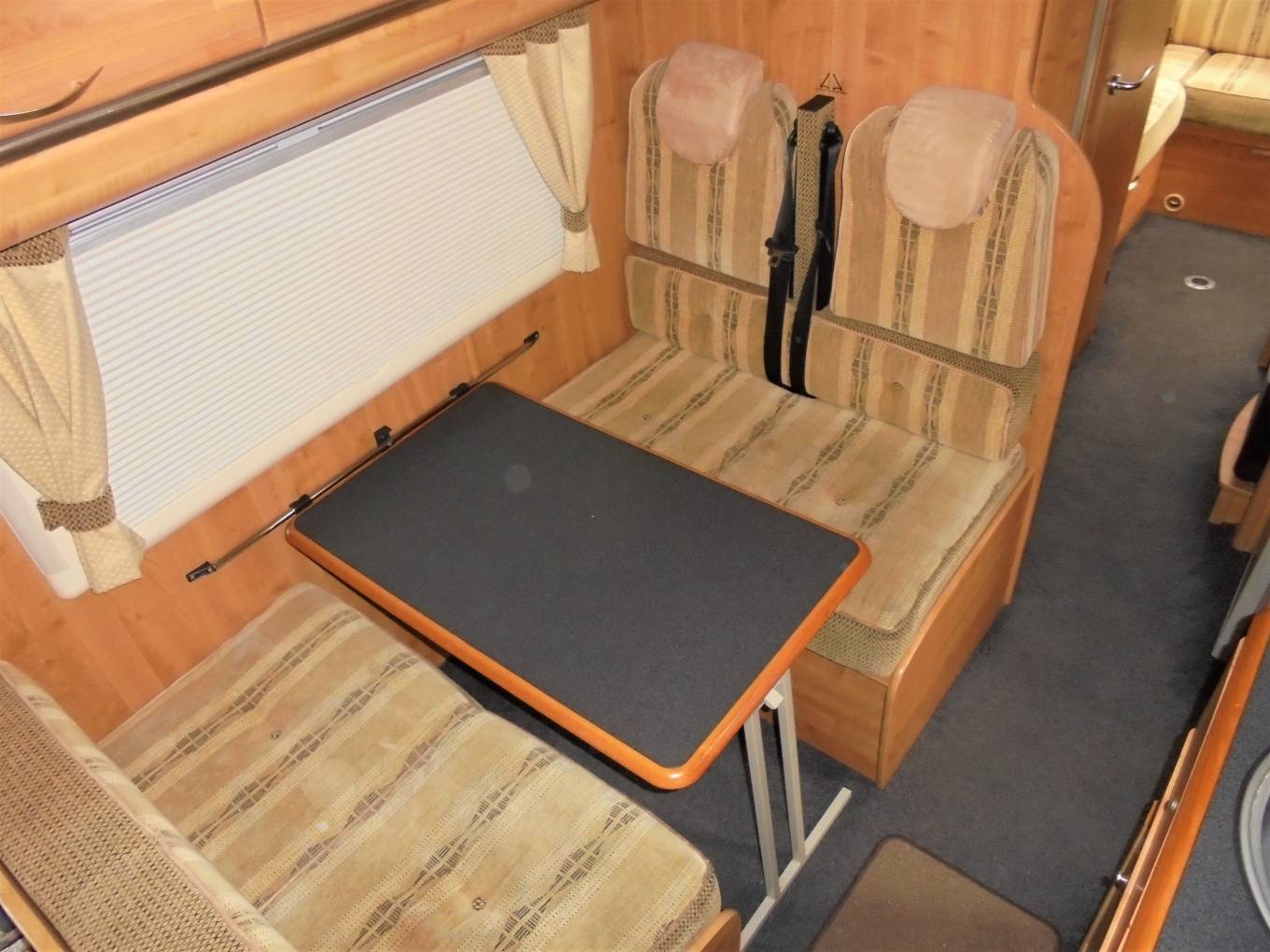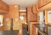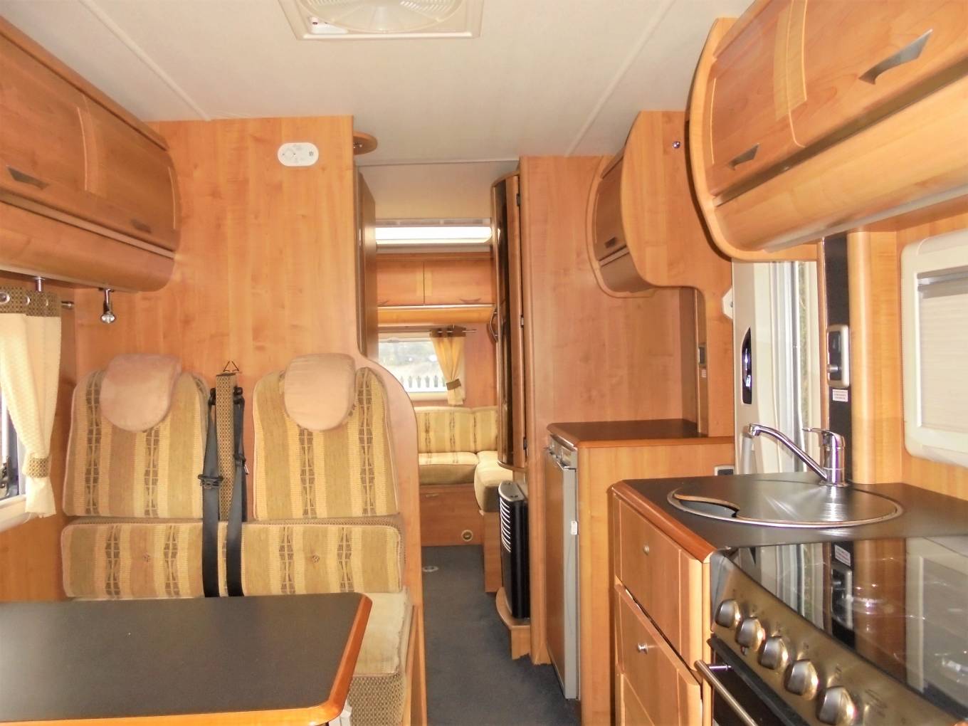 The Autotrail Apache 700 SE comes with over cab bed, a front dinette area with lap and diagonal seat belts that also converts into a double bed and last but not least a panoramic U shaped rear lounge that also converts into a double bed.
