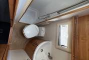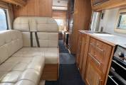 Carrying on through, you come to the kitchen which has everything you need to rustle up a lovely meal. There is a 3 gas, 1 electric ring burner hob, a Caprice oven with grill, a large Dometic 3 way fridge freezer, a sink with mixer tap and lots of storage space for utensils and ingredients plus a good work top area.