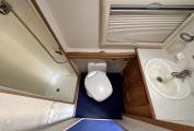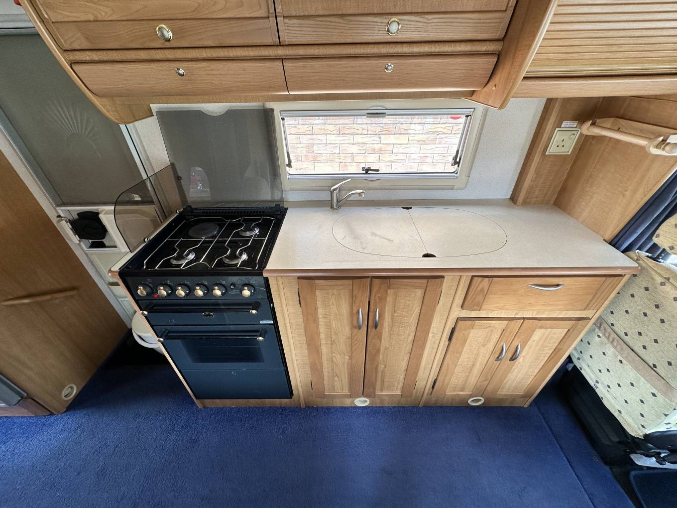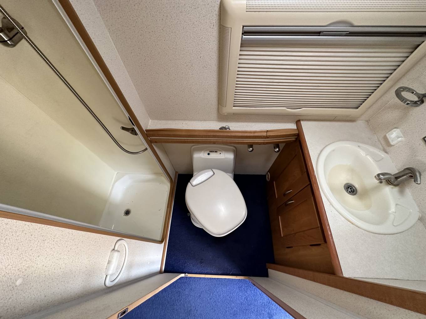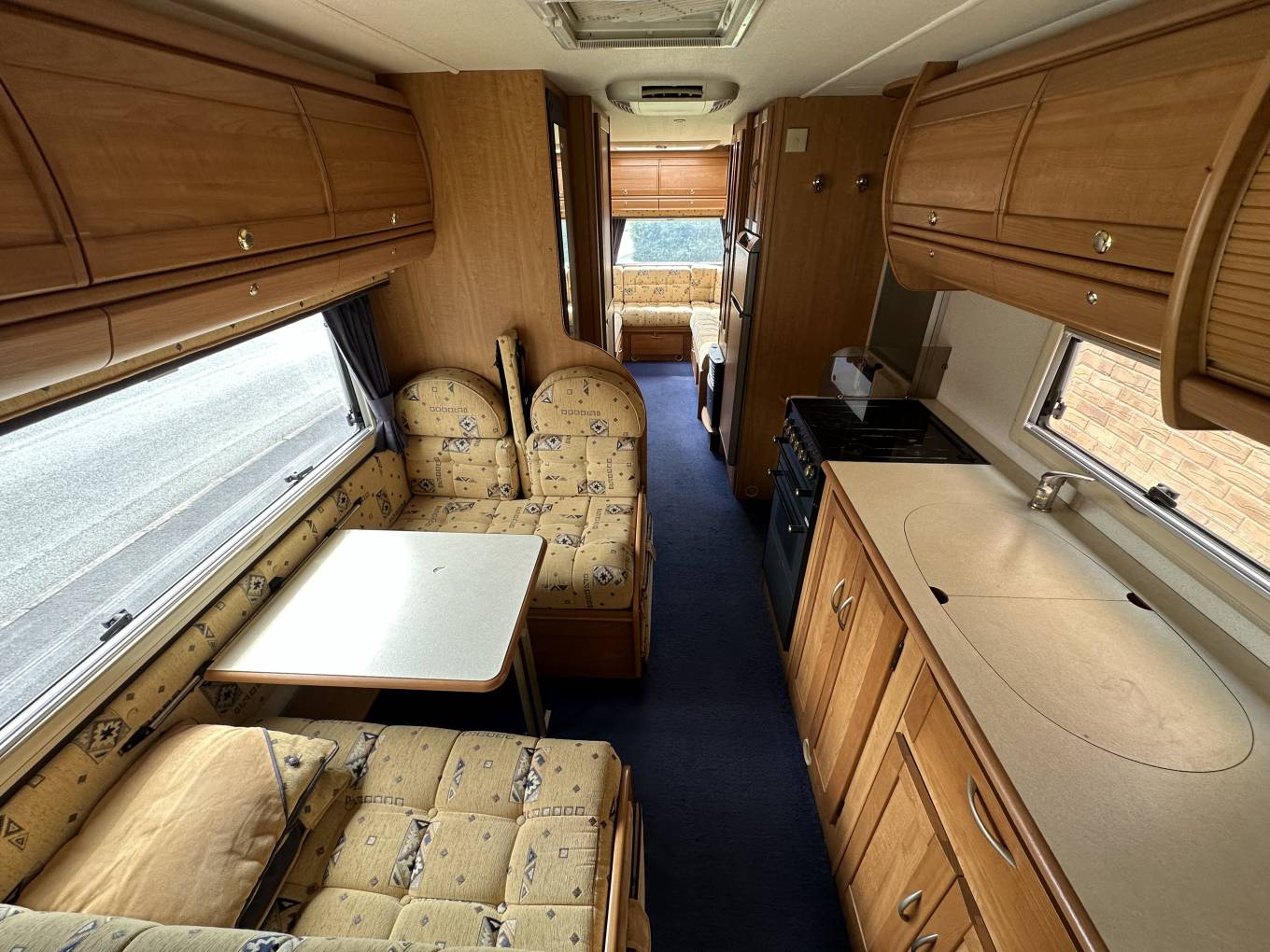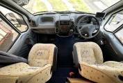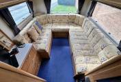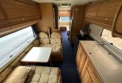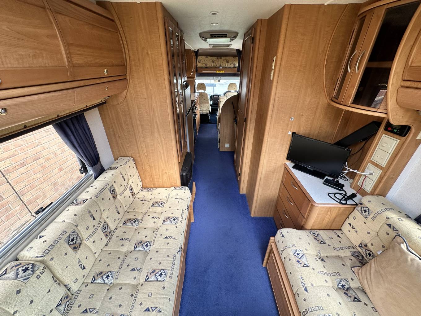 To the rear is a large U shaped lounge. This is the perfect place to relax and converts to a good size double bed. Next is a wardrobe with good storage space. This Motorhome does offer tones of storage. Opposite is the washroom complete with separate shower cubicle, toilet and wash basin. To the front is the well equipped kitchen area. This includes, a large separate fridge freezer, oven, grill, oven, wash basin and microwave. Opposite is the front dinette that converts to a double bed. Finally climb the ladder to the over cab double to complete the 6 berth.