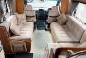 Using the electric step, you enter the motorhome at the lounge/dining area