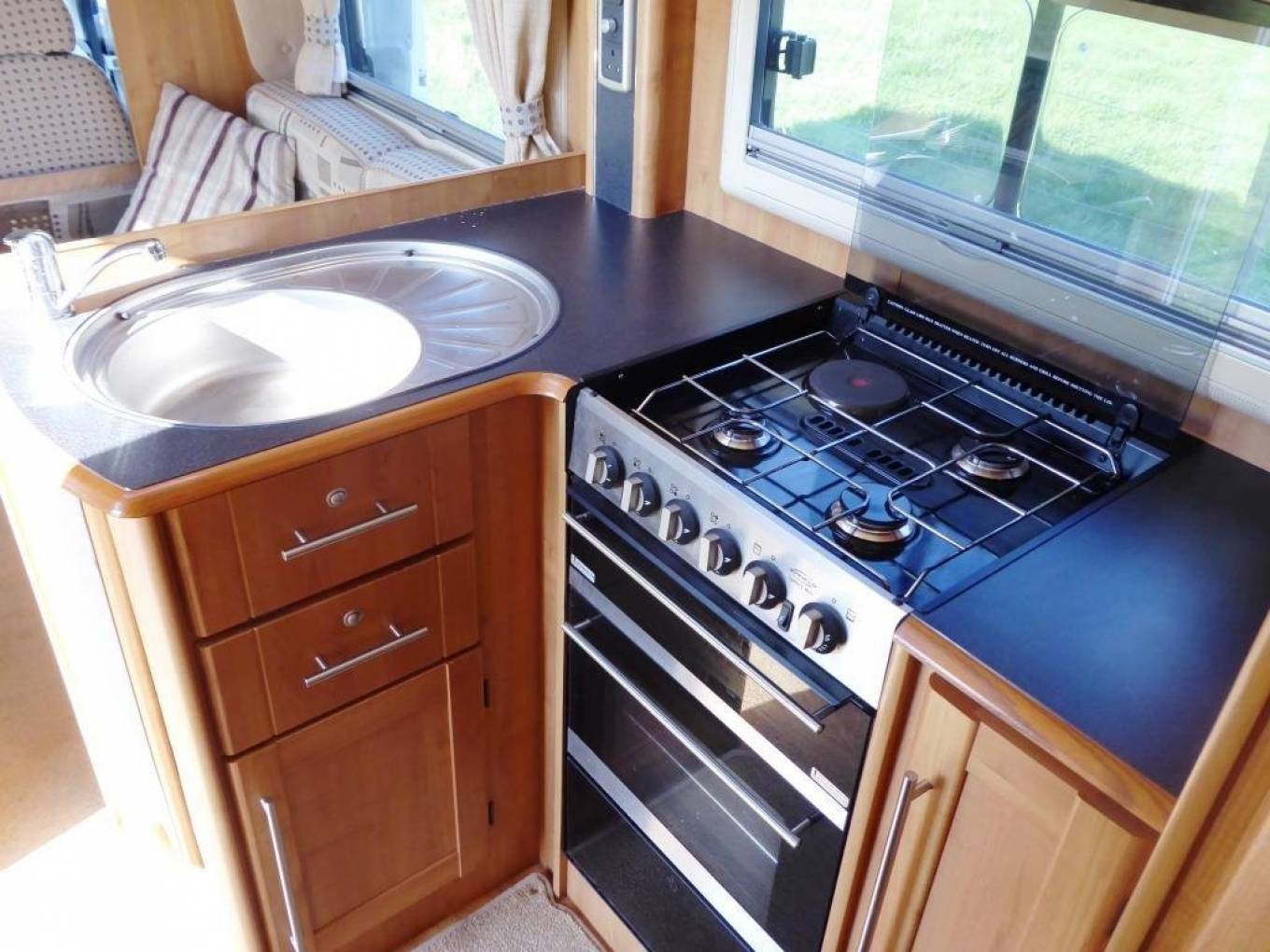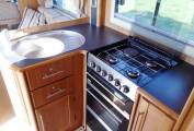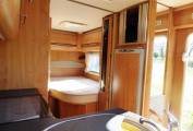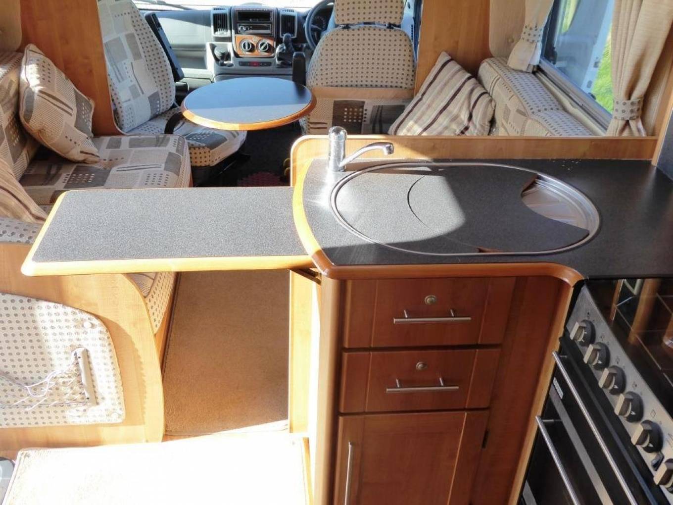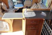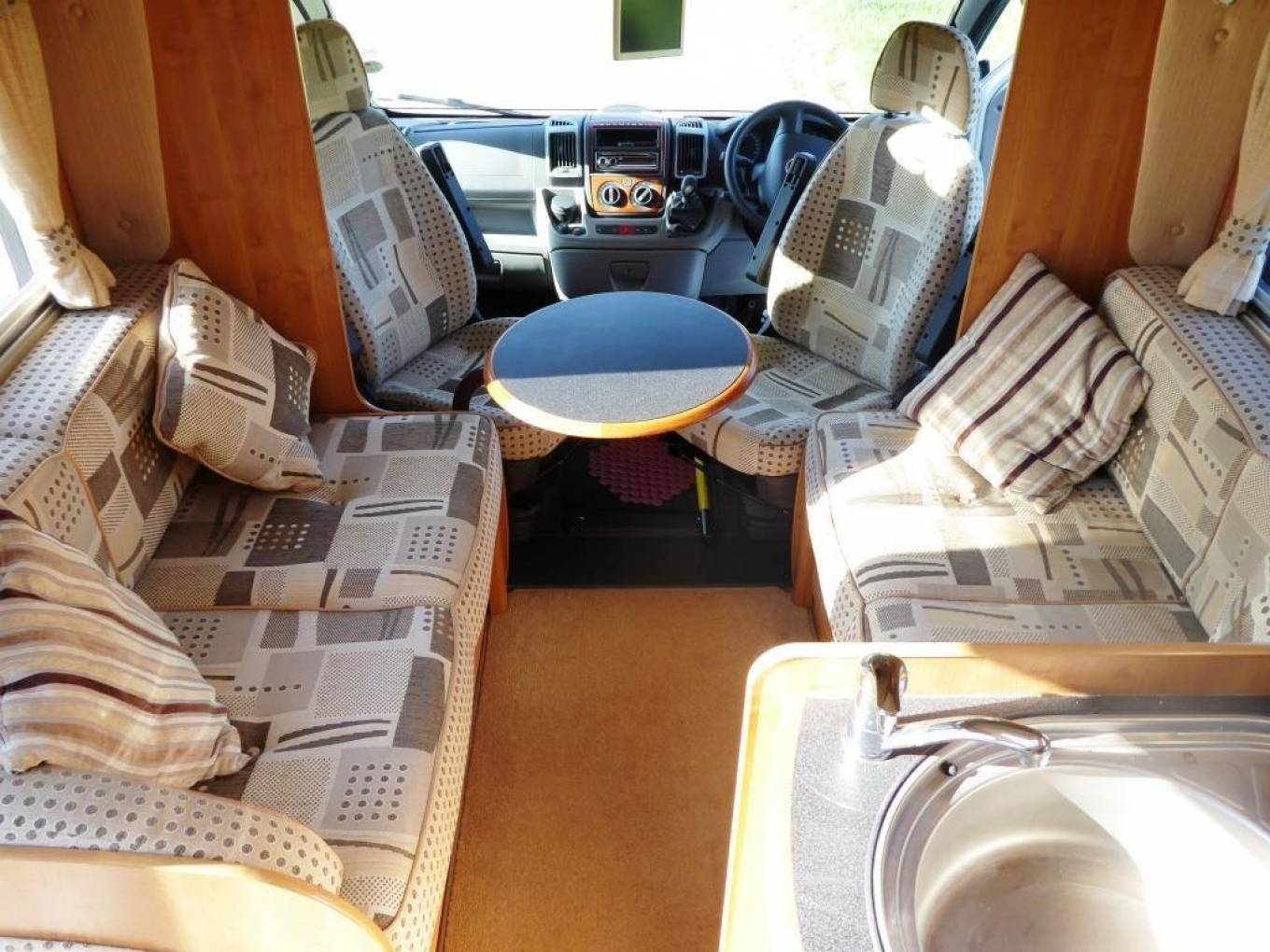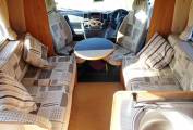 The front of the vehicle has two opposing sofas, this area feels welcoming and light and is complimented by ample storage space via overhead cupboards and under the seat. This 660SE has the overcab bed making the van cater to 6 sleepers.