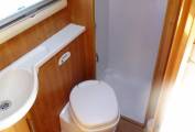 Opposite the rear fixed bed is the washroom, this boasts a separate shower, sink, toilet with plenty of storage and space.