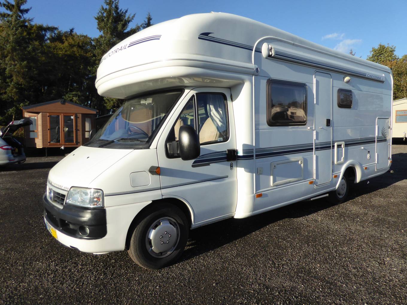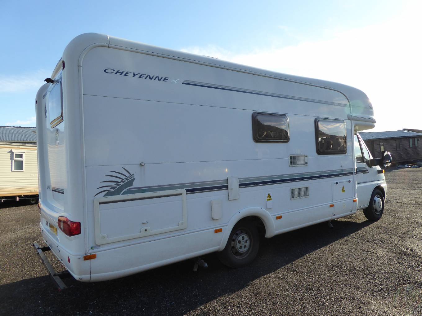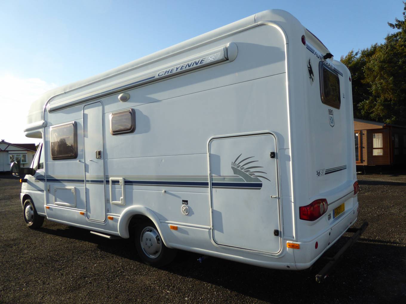 This Autotrail Cheyenne 696SE 4 berth coachbuilt motorhome was first registered in May 2003, has travelled 52049 miles, weighs 3850kg and has long MOT until July 2019. Built on the Fiat Ducato chassis it has the powerful 2800cc engine, 5 speed manula gearbox and comes in at 7.26metres in length. Externally it benefits from Gas BBQ point, canopy, electric step, Whale hot and cold external shower. The reversing camera connections are working, however the image is very poor. At the rear is the large garage which can be accessed from both sides of the motorhome and internally, it is approx 7 feet 2 inches wide, 4 feet deep, 3 feet 10 inches high, the leisure battery is situated here. Internally at the rear is the transverse fixed bed and when you come down the stairs there is large wardrobe space and gas fire beneath. Opposite is the washroom with toilet, sink and shower with full enclosure. In the kitchen there is a microwave. cooker with 1 electric hob, 3 gas burners, oven and grill. In the front lounge there are 2 sofas that are 4 feet 6inches long and make up into a full width double bed. In the cab there is radio, CD and USB point. Please note this vehicle is owned by a dealer, as a potential buyer, should you purchase this vehicle, if the vehicle is not as described, of satisfactory quality or fit for purpose you may have a claim under the Consumer Rights Act 2015. Part exchanges are welcomed on this vehicle.