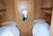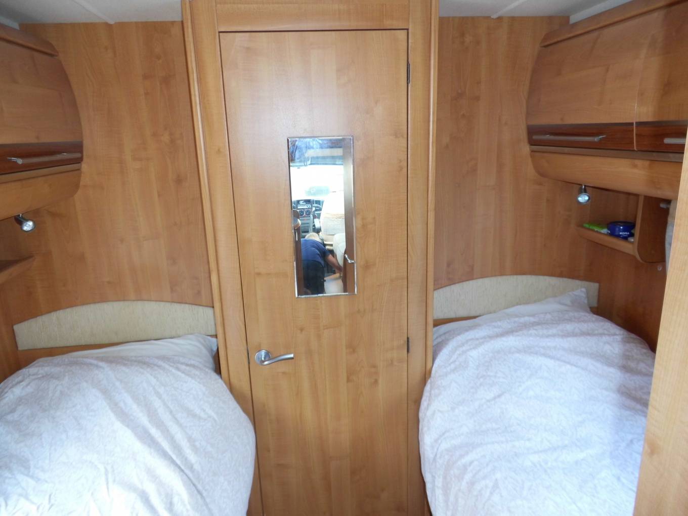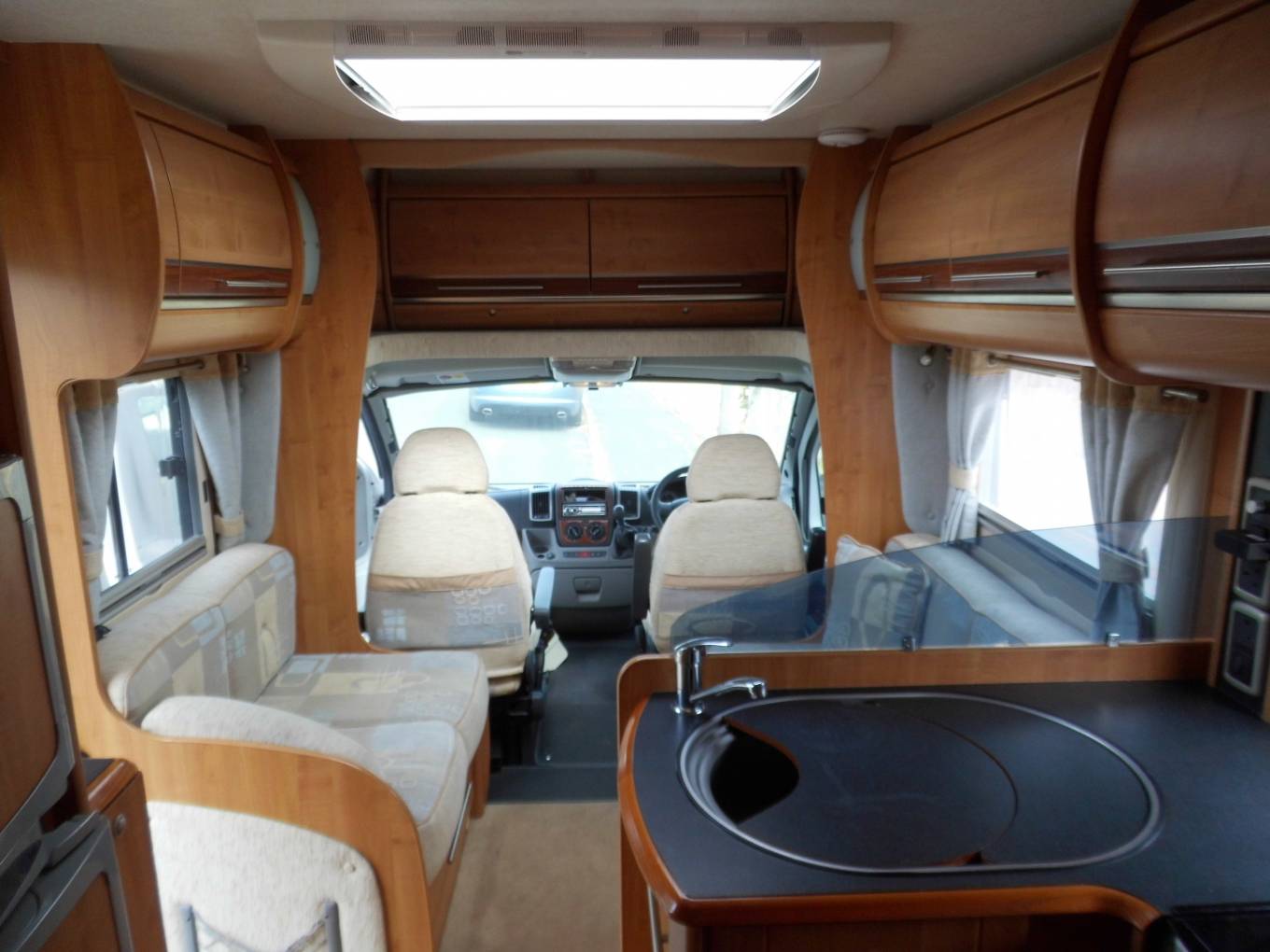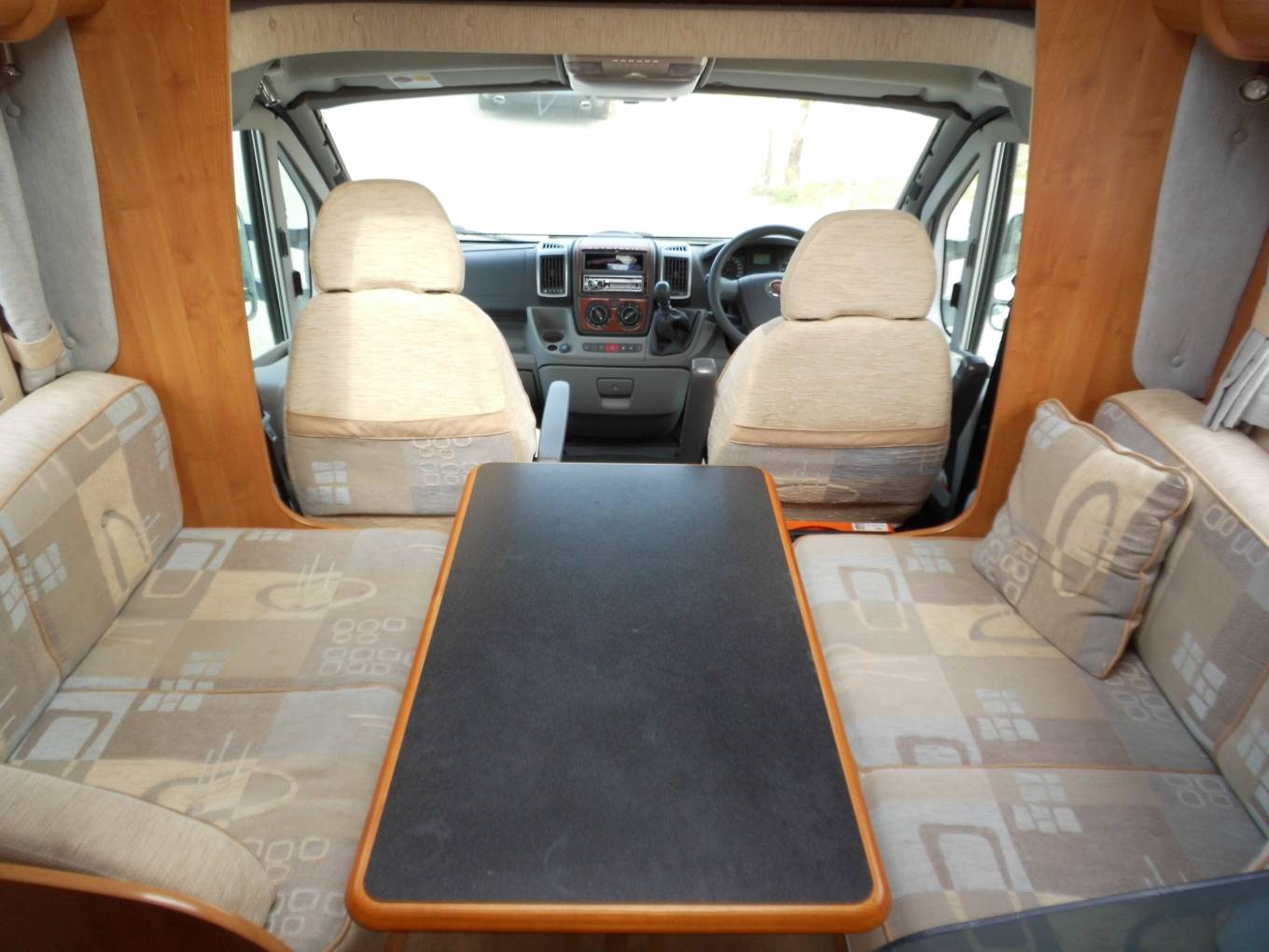 A lovely 4 berth motorhome with 2 fixed single beds. Built on a Fiat Ducato chassis with a 2287 cc diesel engine. This also comes with air suspension, a reversing camera and solar panel. It is righthand drive, 6 speed manual gearbox. It comes with Sigma S34 alarm system and instructions. On entering the motorhome through a side door, immediately in front of you is a lovely kitchen area containing a four ring hob, consisting of three gas rings and one electric hot plate, an oven with a separate grill, a large fridge freezer and a sink/worktop area. Moving to the front of the motorhome is a spacious lounge area consisting of 2 sofas and a removable dining table which also converts into a double bed. Both of the front seats swivel making it a perfect socialising area. Moving to the back of the motorhome there are 2 fixed single beds with ample storage cupboards and a TV. This area has a door to separate the bedroom from the kitchen/dining area perfect for privacy or a dressing area. At the rear of the motorhome is a spacious washroom consisting of a toilet, wash basin, built in storage cupboards and a separate shower cubicle. There is a rear window in the bathroom. There are also sky lights in each compartment making it very light and airy.